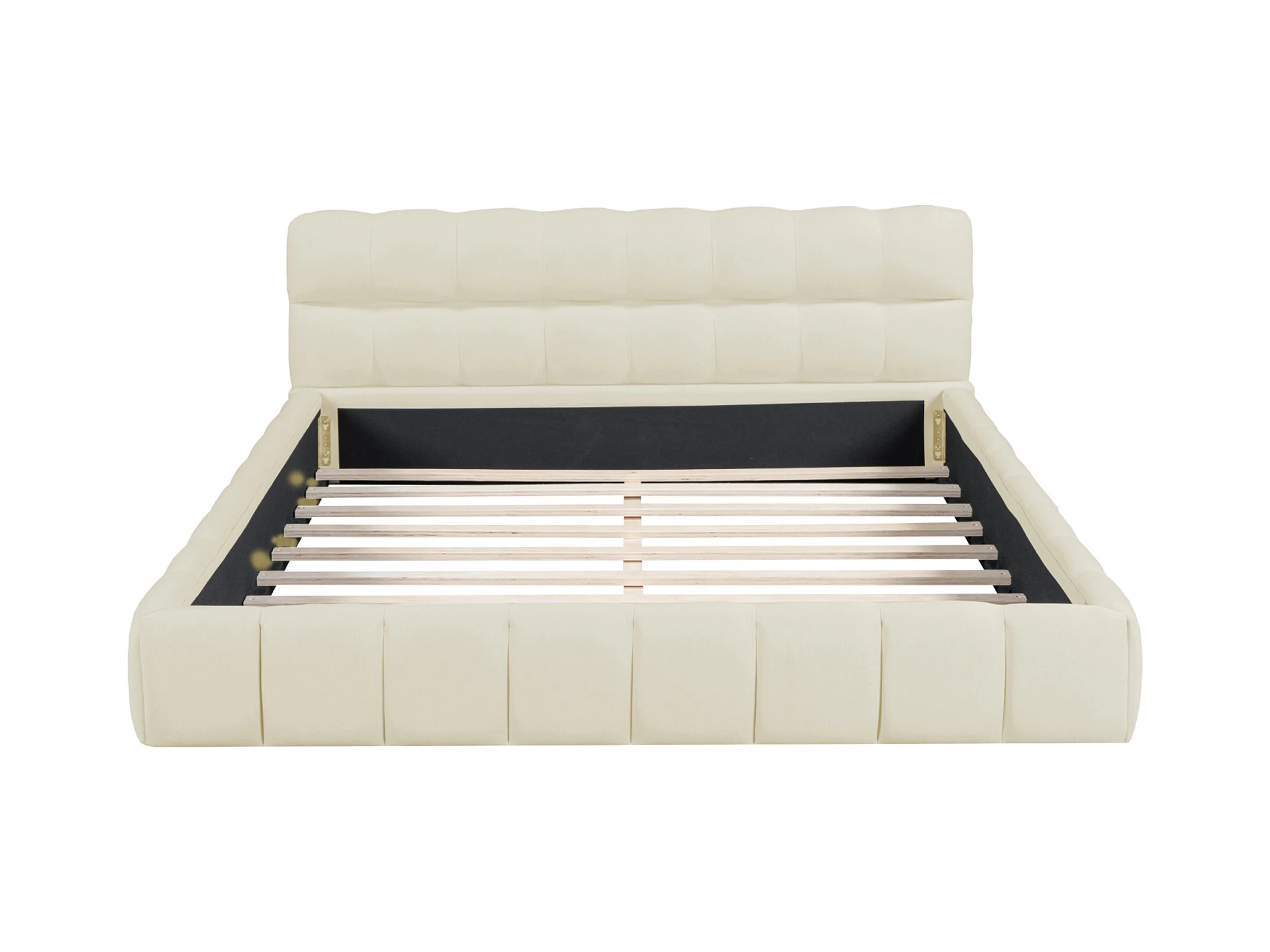 Lit adulte 140x190 cm avec sommier à lattes - NEXU - Style crémeux - lit capitonné en tissu lin 140x190 cm - cadre de lit 140x190 cm - beige