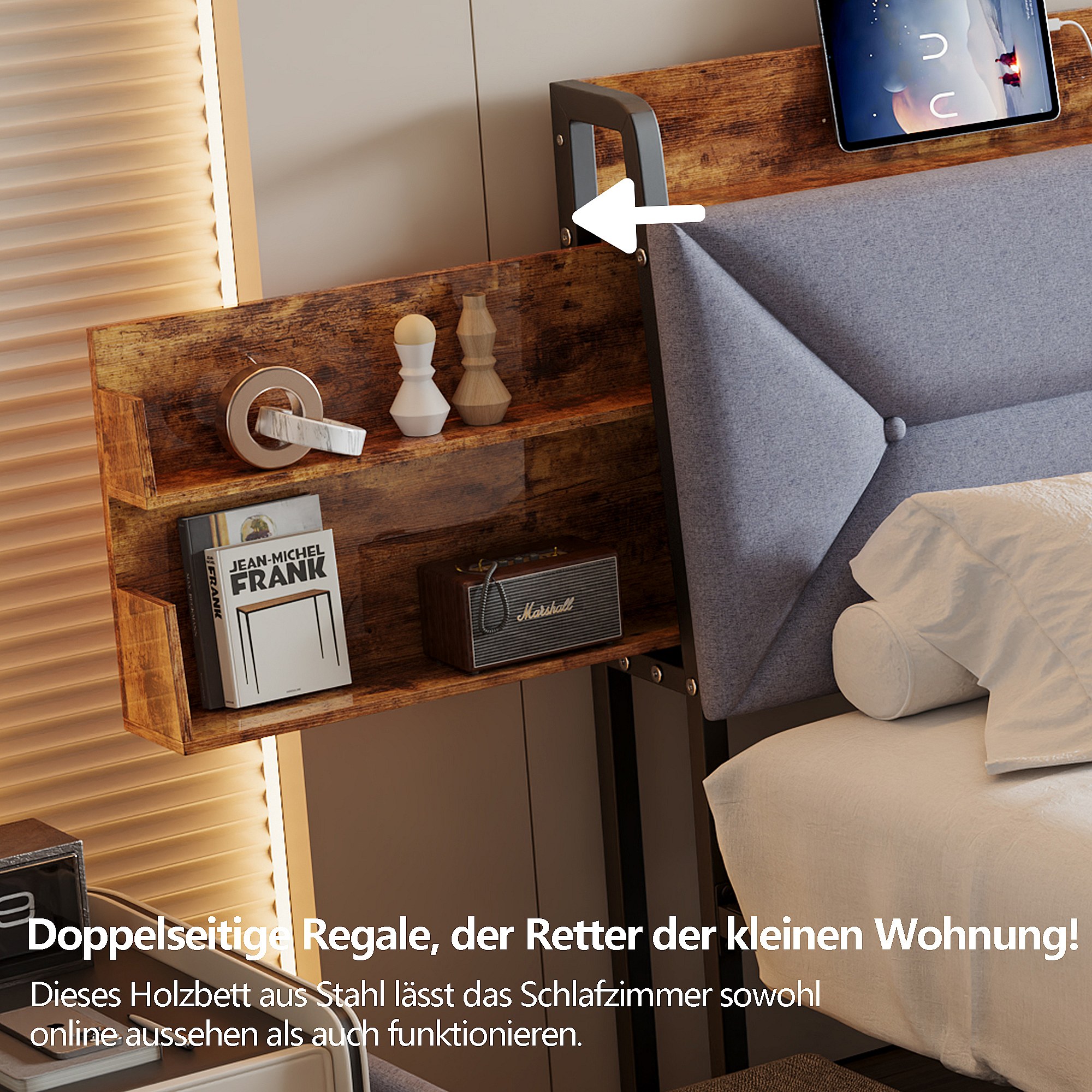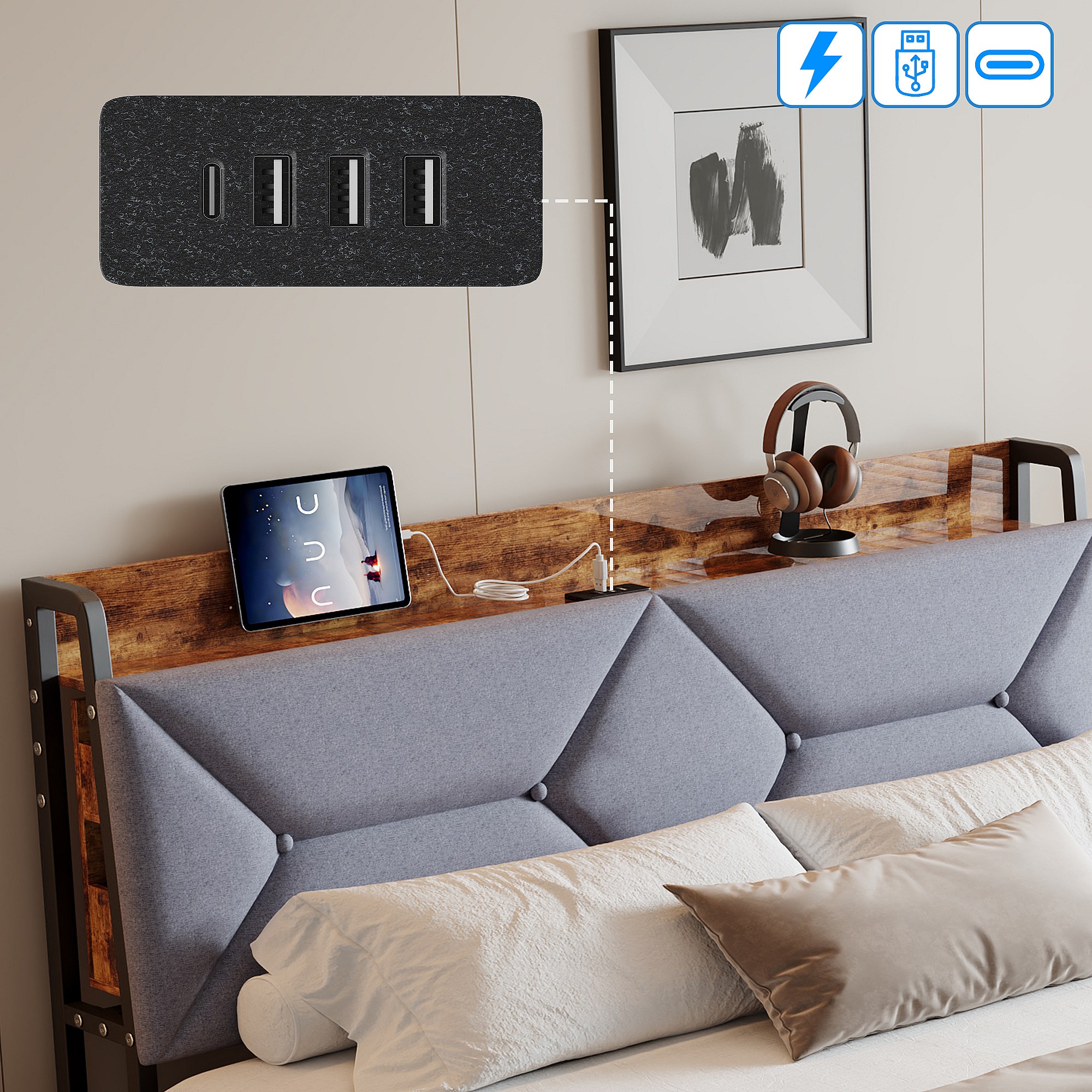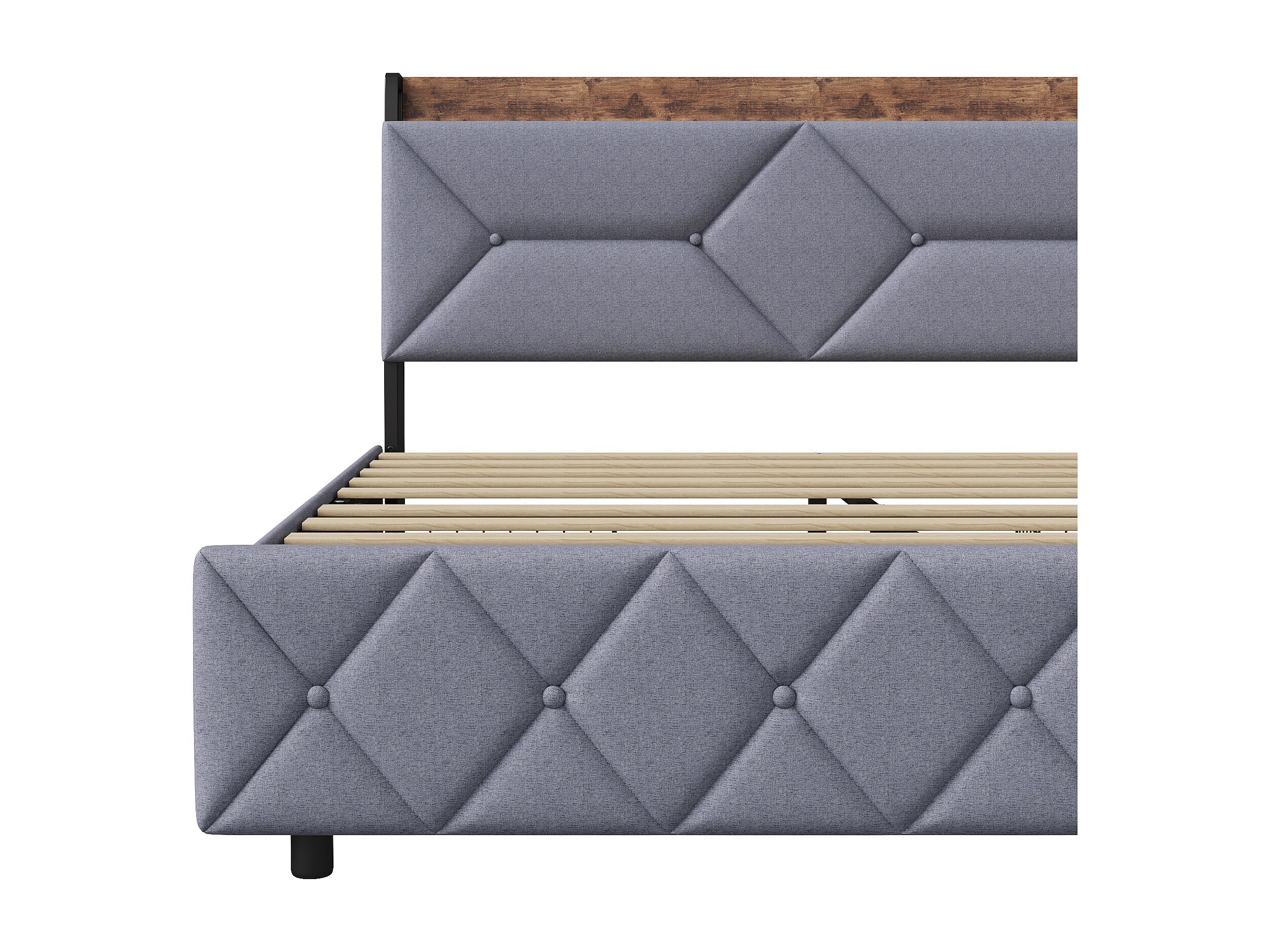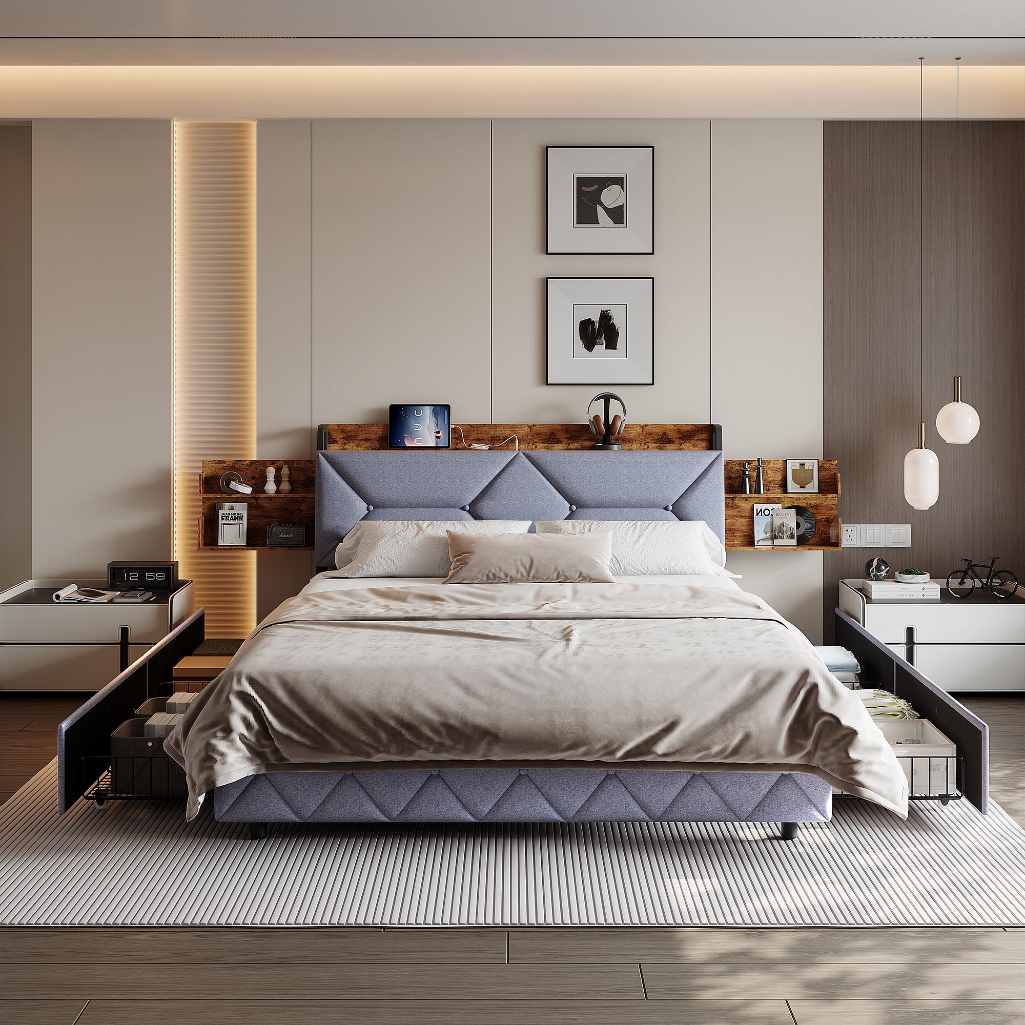 Lit Double 140x200, Cadre de Lits avec 4 tiroirs et sommier à Lattes, Ports USB et Type-C, Rangement sous Le lit