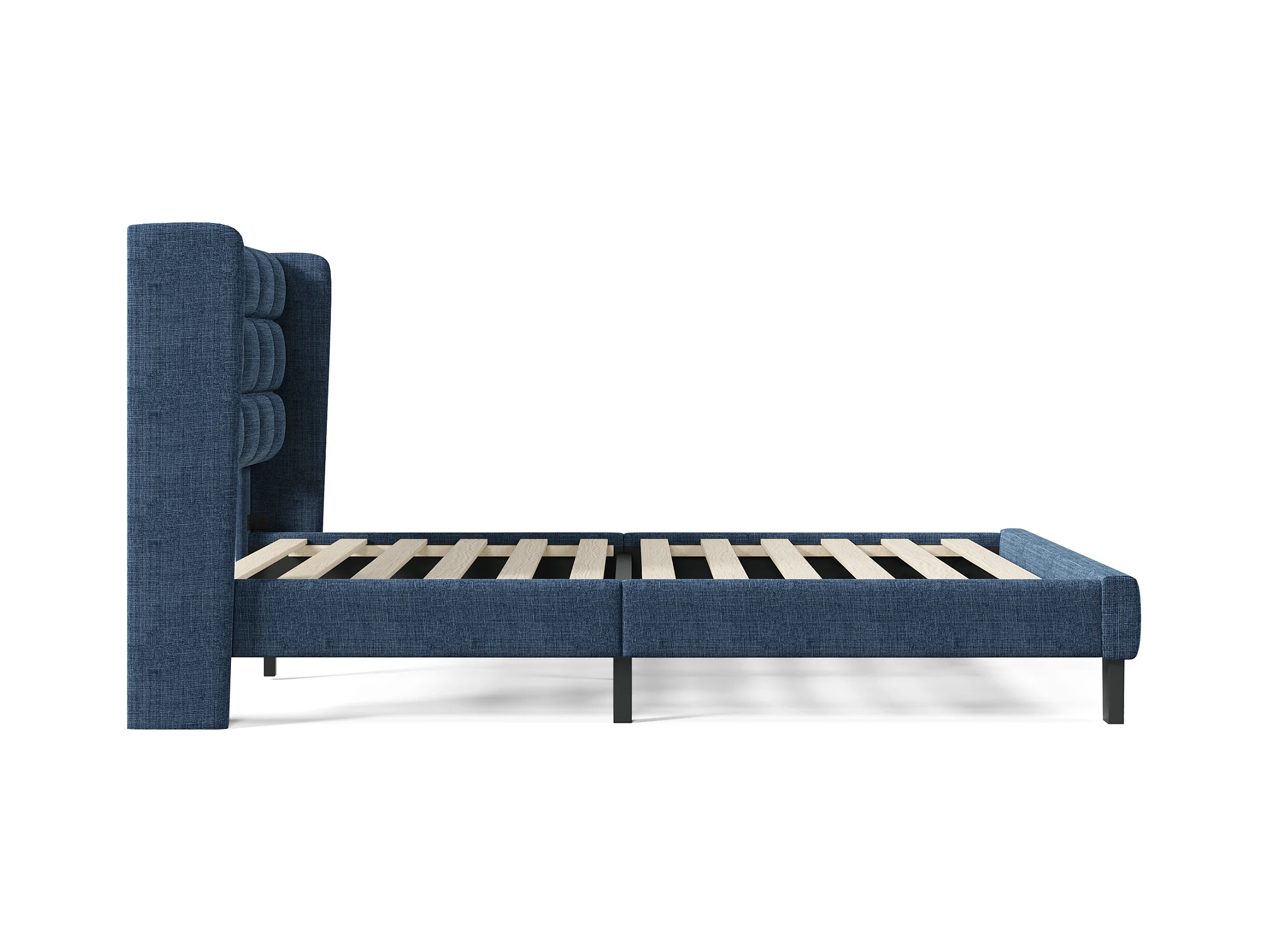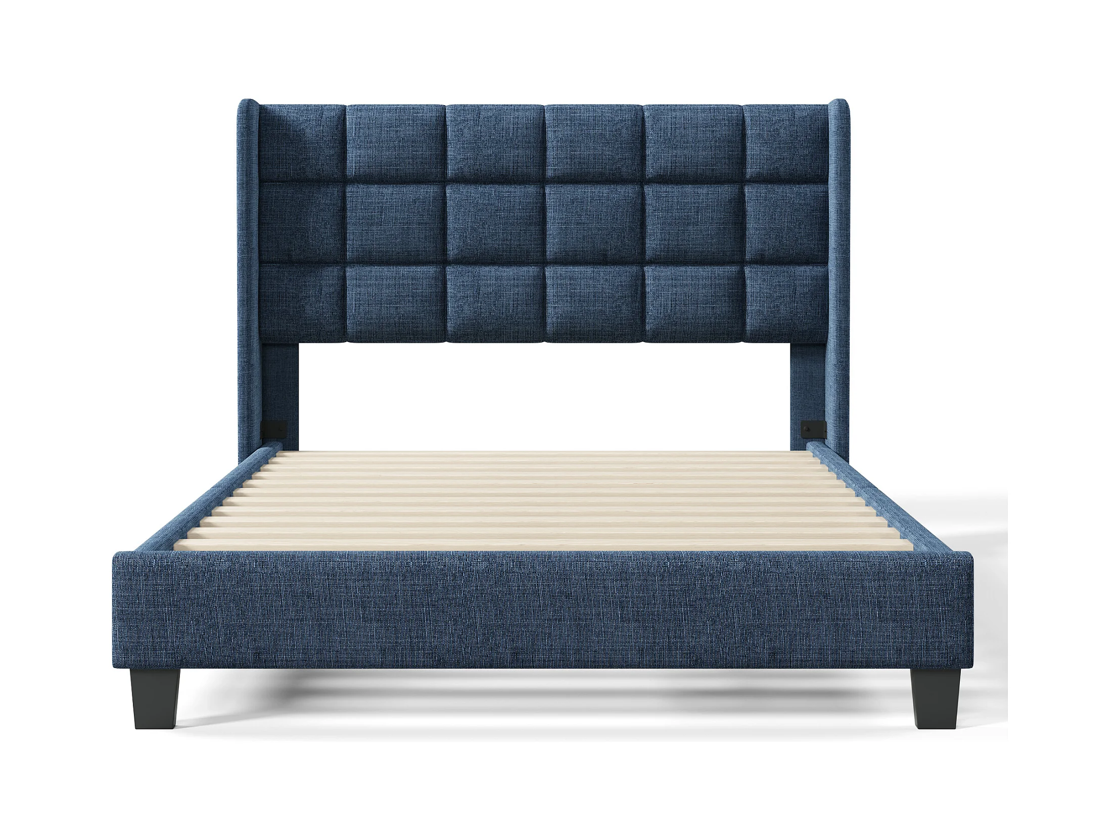 Lit double 140x200 cm Lit adulte - avec sommier à lattes en bois - lin bleu - sans matelas