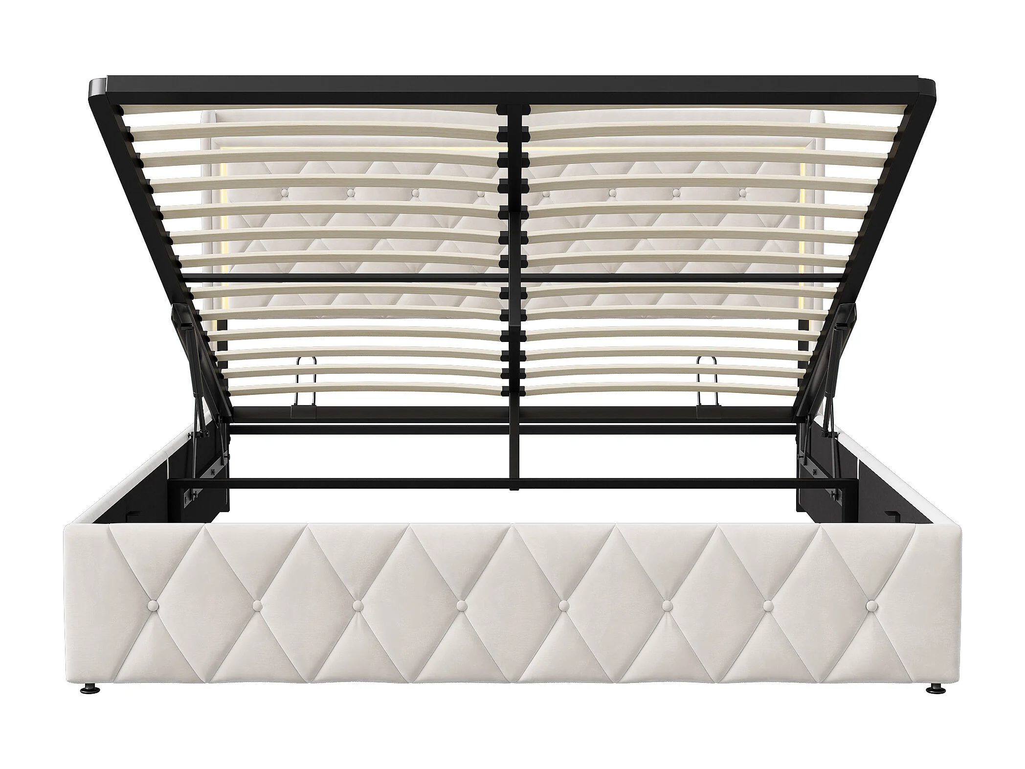 Lit double 140x200cm avec rangement hydraulique - tête de lit avec LED et ports USB - velours - beige