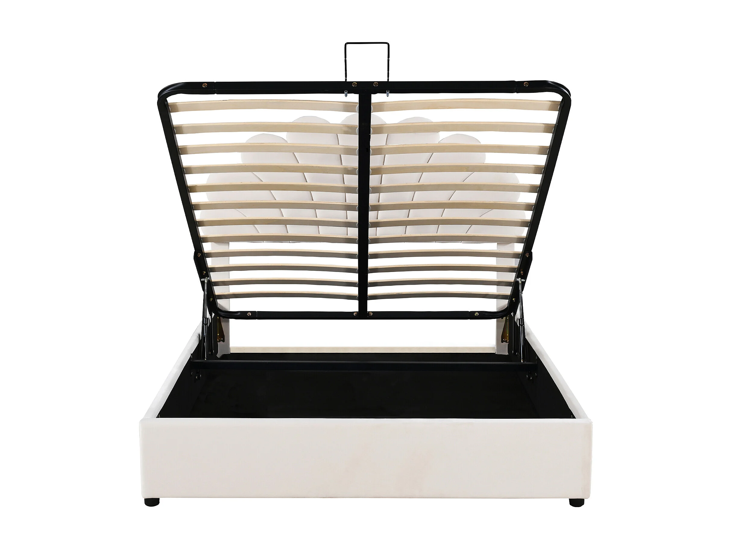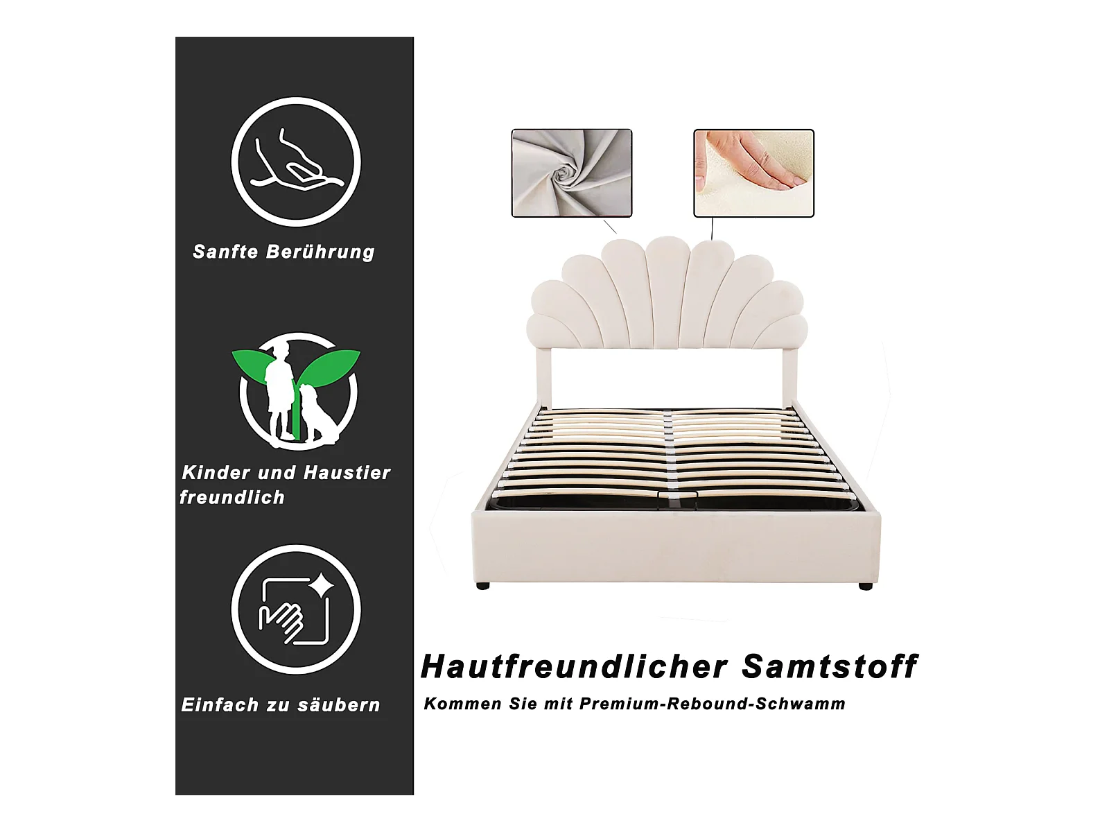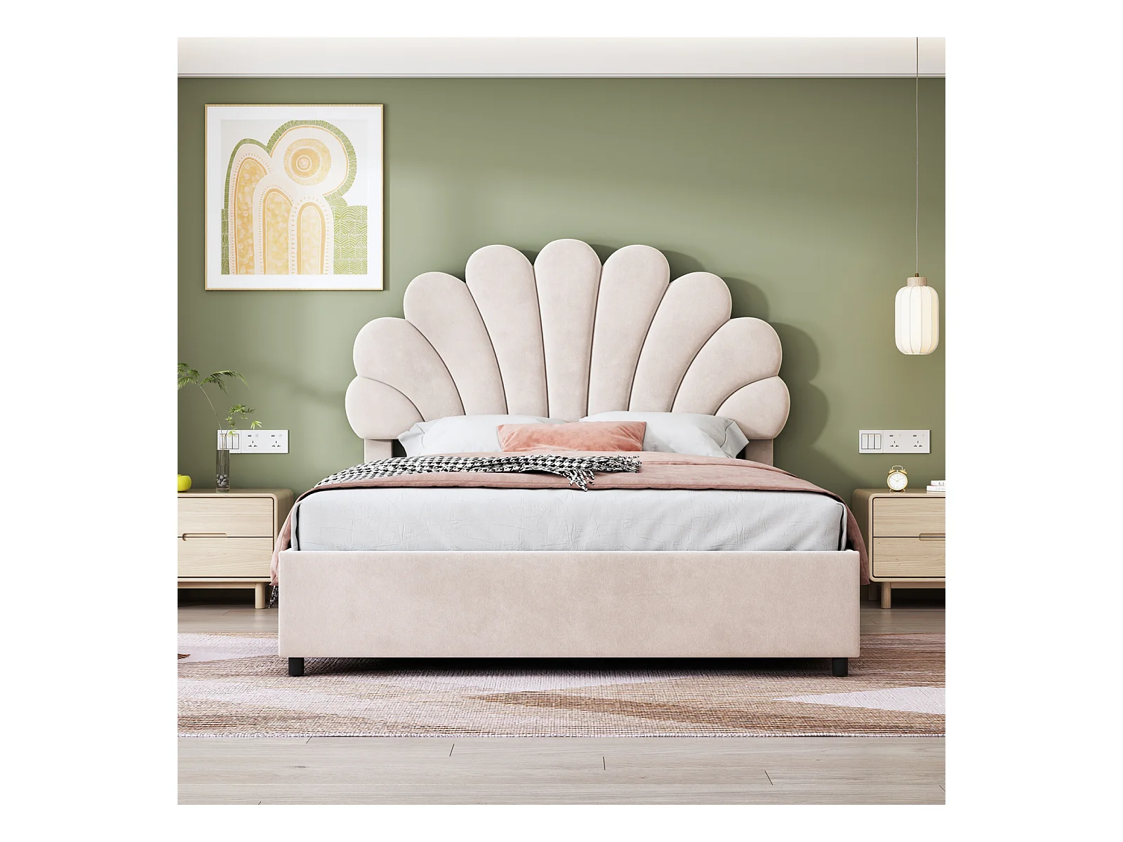 Lit Double 140x200cm Avec Tête de Lit en Forme de Fleur, Sommier à Lattes, Velours, Beige