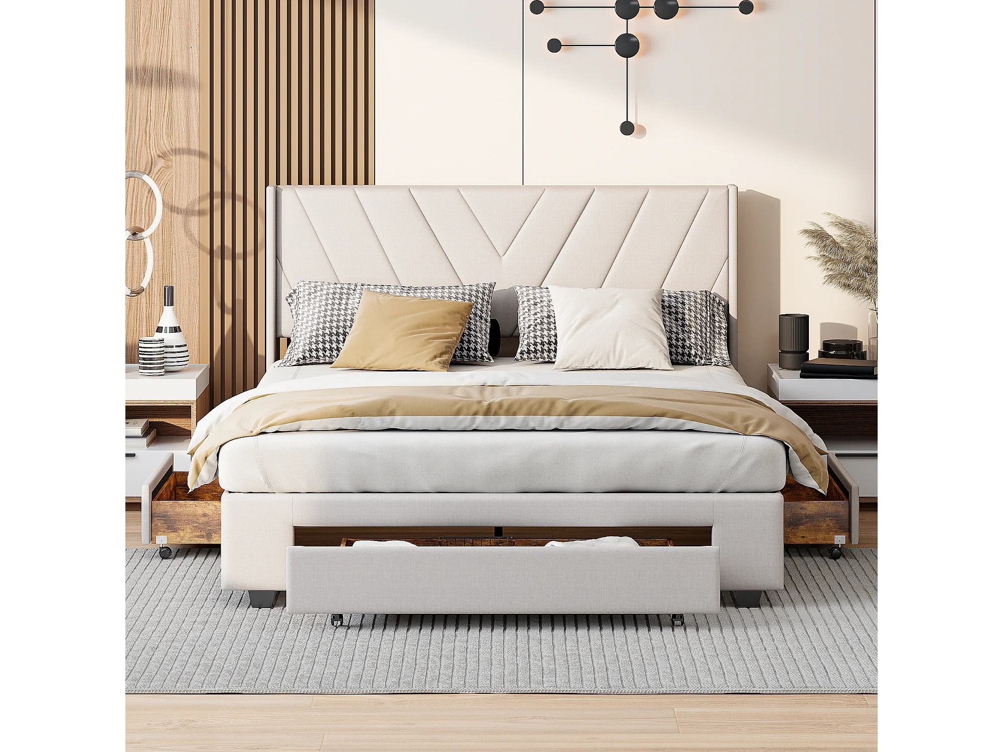 Lit adulte tiroir - 160 x 200 cm - Tissu de lin - beige
