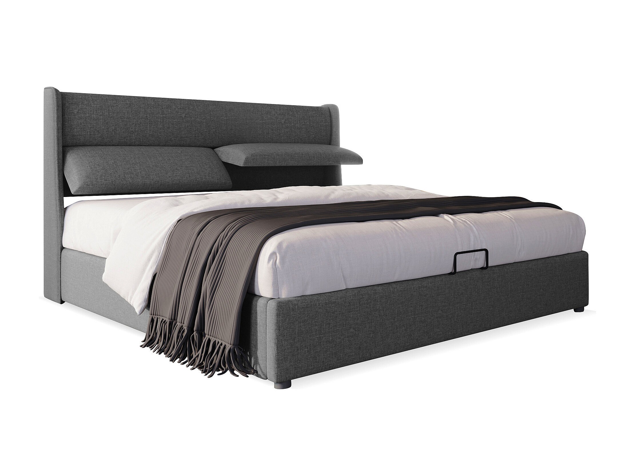 Lit double 160x200 cm avec têtière réglable et rangement pratique en lin gris