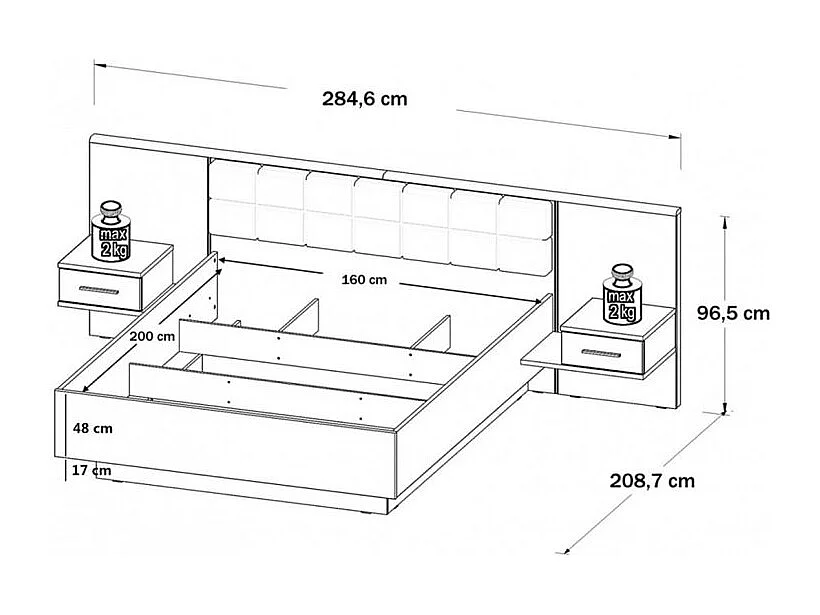 Lit double 160 x 200 décor chêne foncé et noir avec LED - RIVIERA