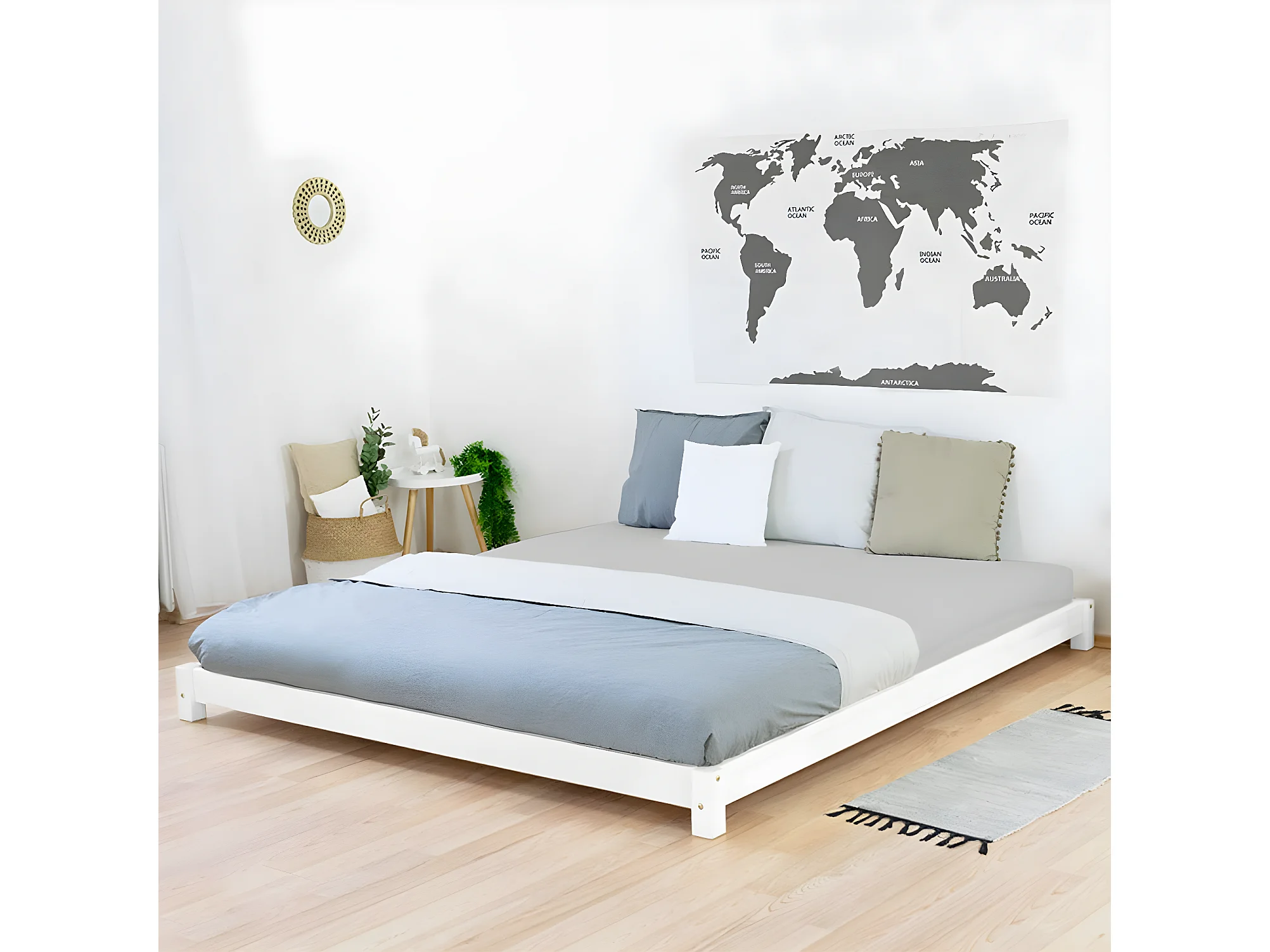 Lit double 160x200 style Tatami - Blanc