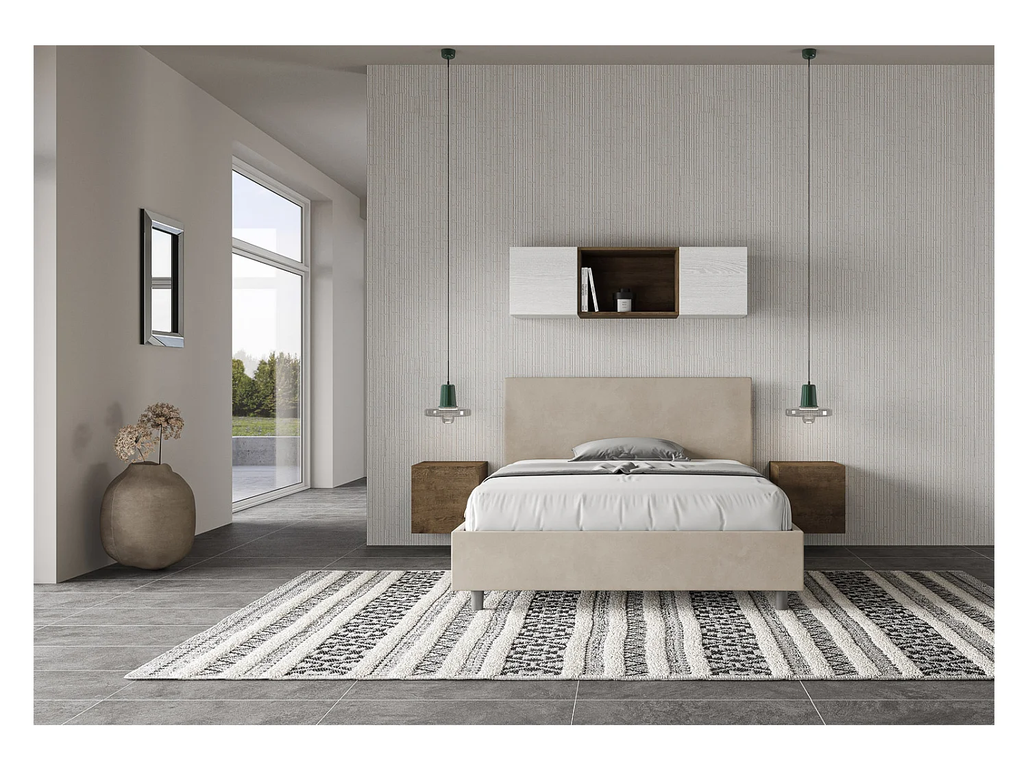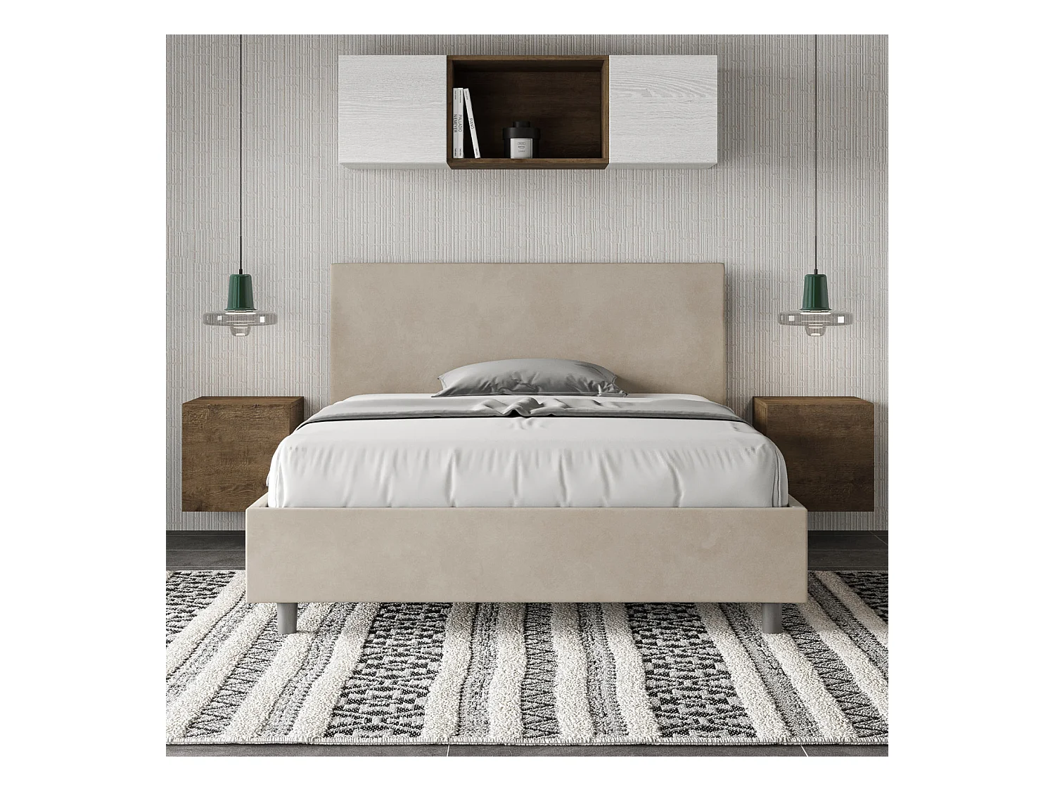 Lit adulte moderne microfibre Adelyne-Couleur Beige-160x200-Option Avec sommier
