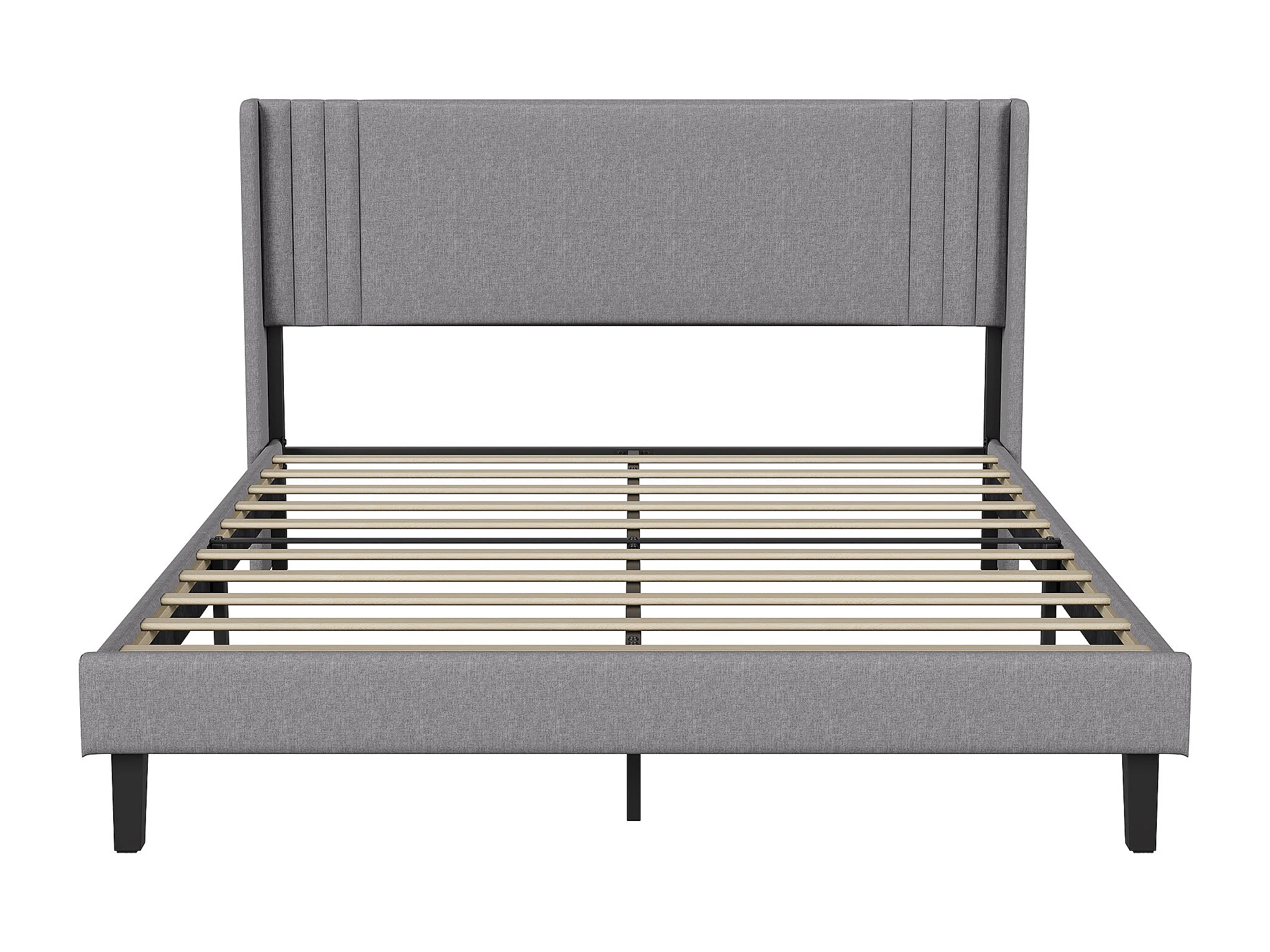 Lit double 160x200cm avec sommier à lattes et cadre en métal - Style moderne - Lin - Beige/Gris