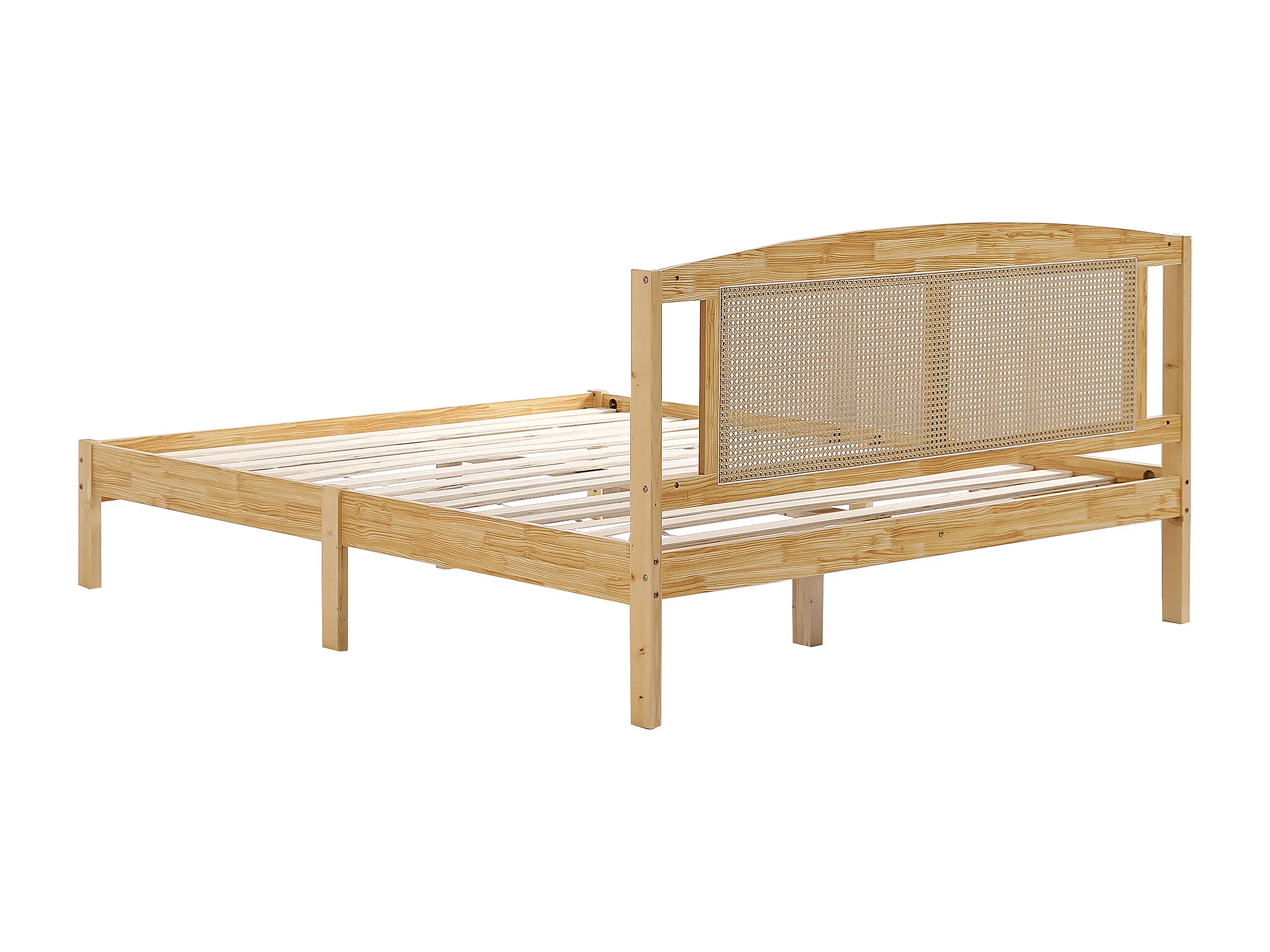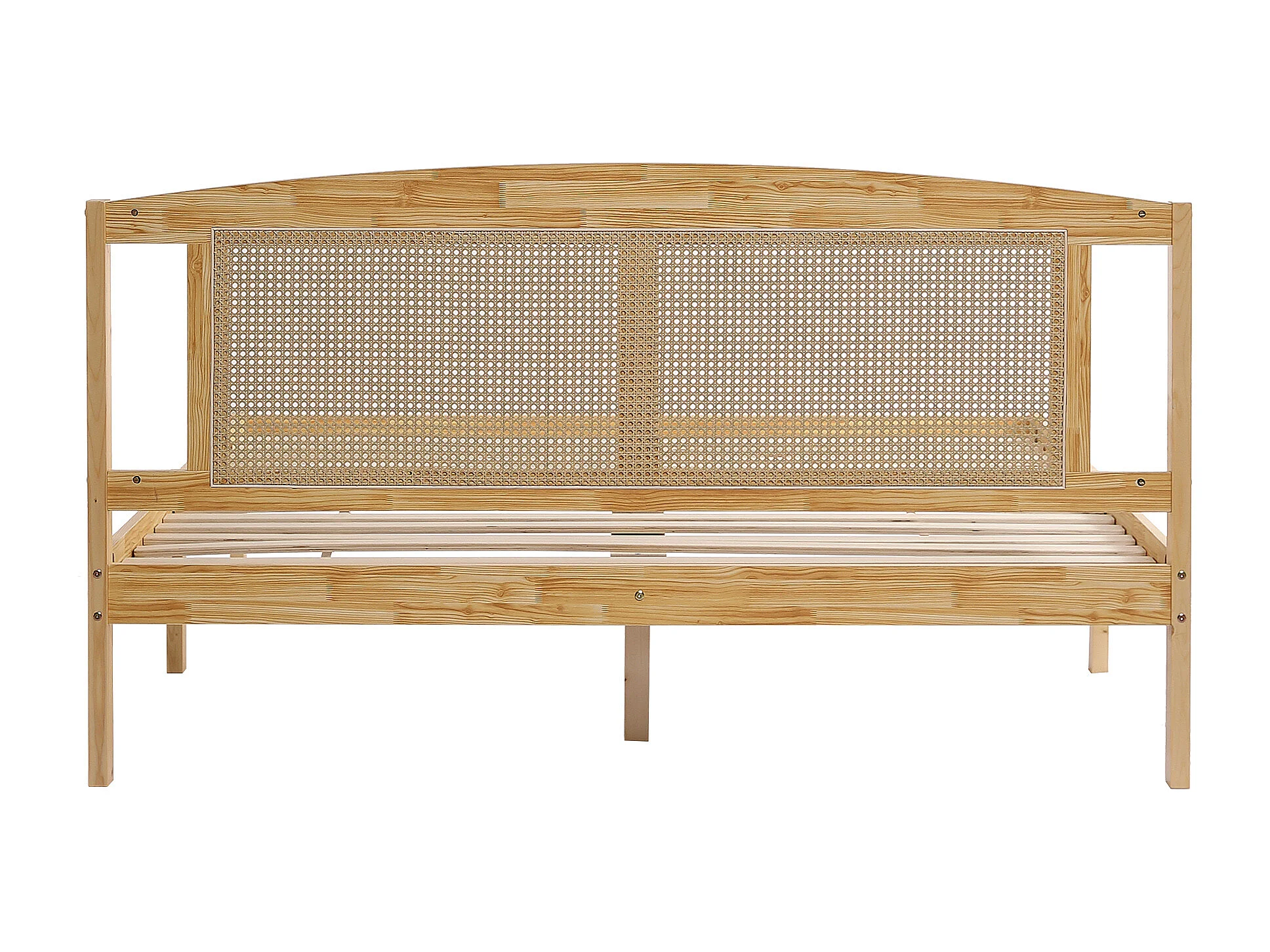 Lit double 160x200cm avec tête de lit en rotin - Lit enfant / adulte en bois pin - Couleur naturel