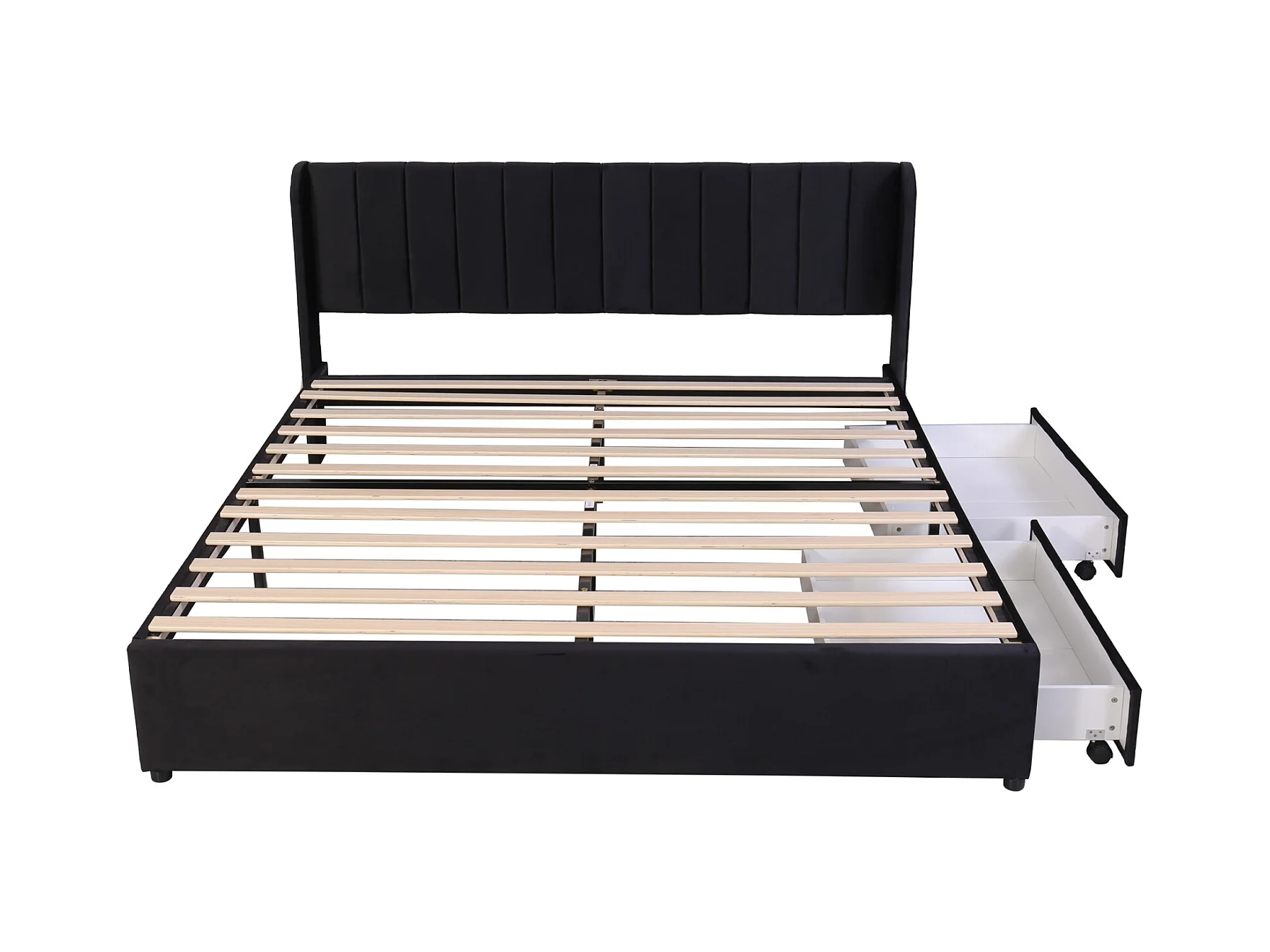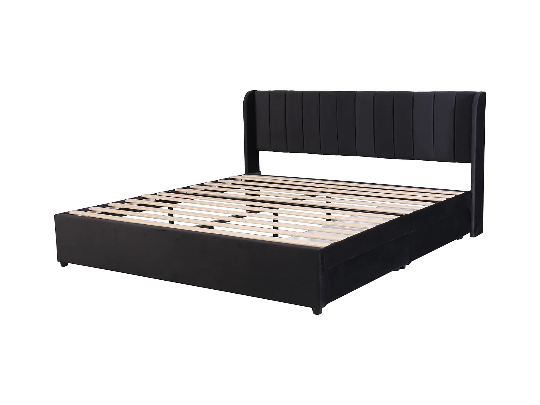 Lit double 160x200cm, lit rembourré en velours, avec 2 tiroirs, sommier à lattes et tête de lit, noir