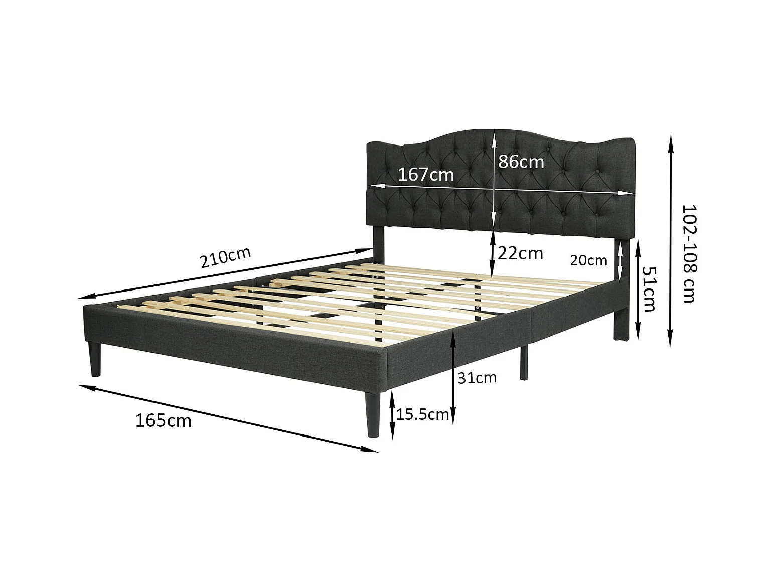 Lit double 160x200cm sans matelas sans rangement