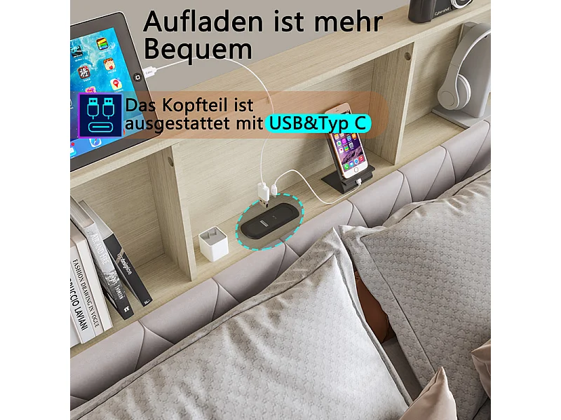 Lit Double 180x200 avec Rangement - Grand Lit Velours Béige 4 Tiroirs et Tête de Lit LED - Structure Renforcée 300kg Confort Maximal