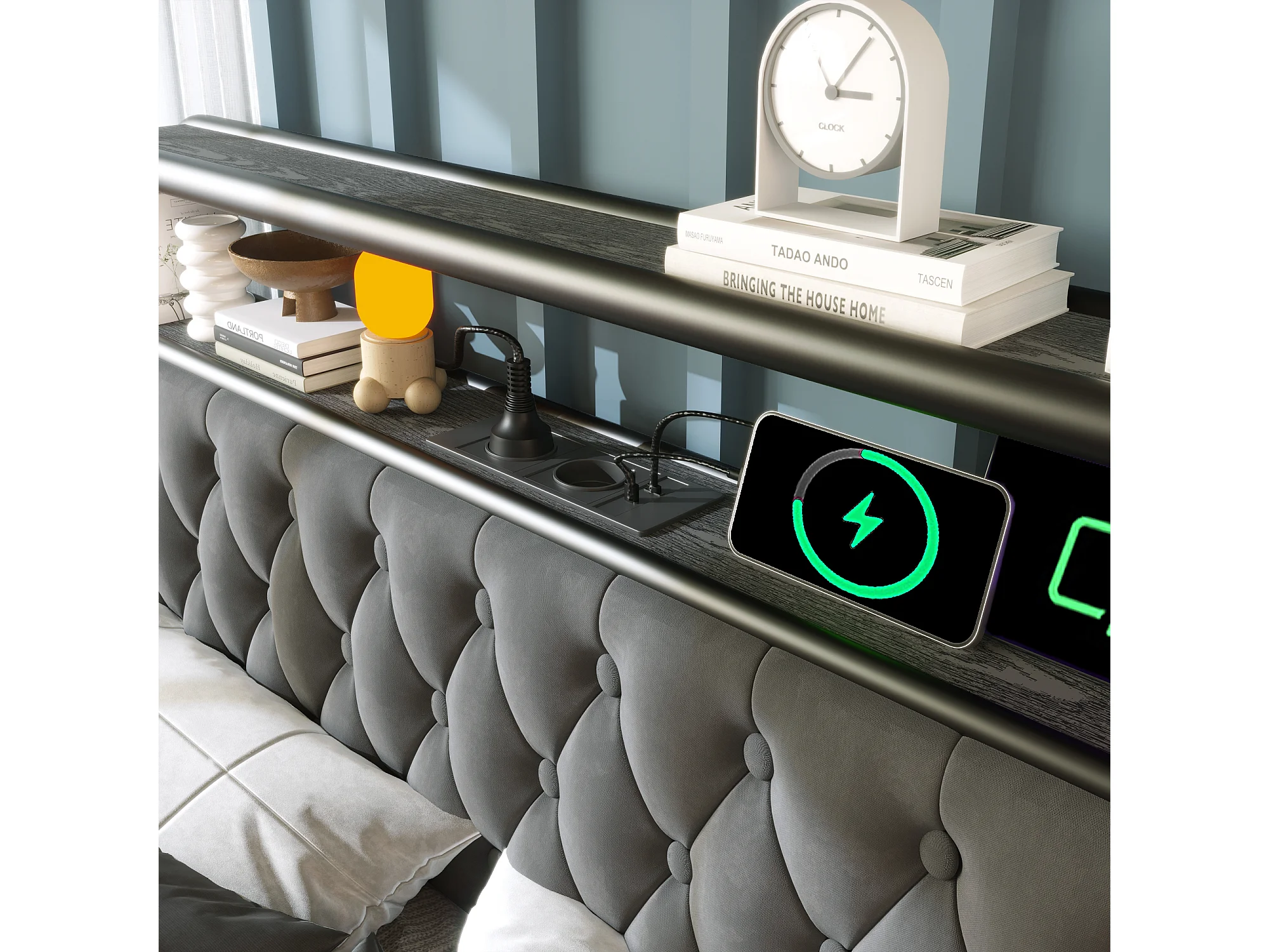 Lit adulte 180x200 cm avec chargement USB Type-C, éclairage LED, cadre en métal avec 4 tiroirs, en velours (sans matelas)