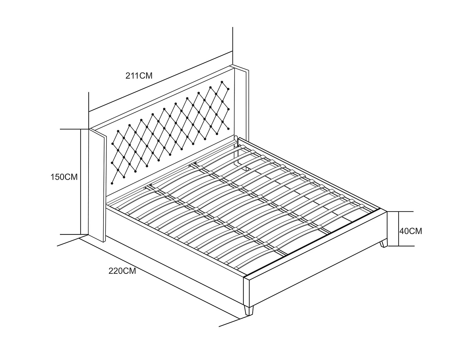 Lit double 180x200 cm velours noir tête capitonnée sommier inclus PRINCESSE