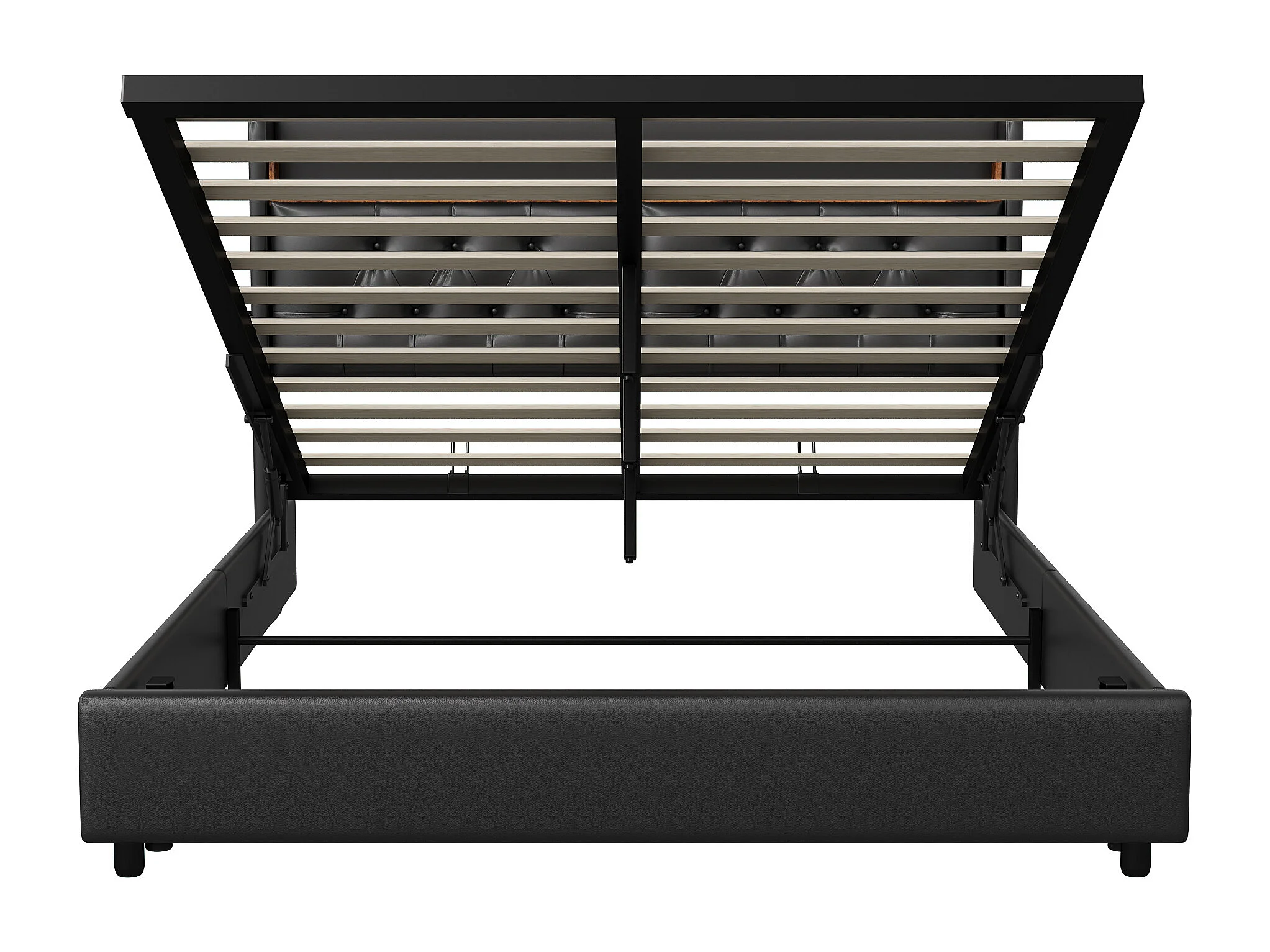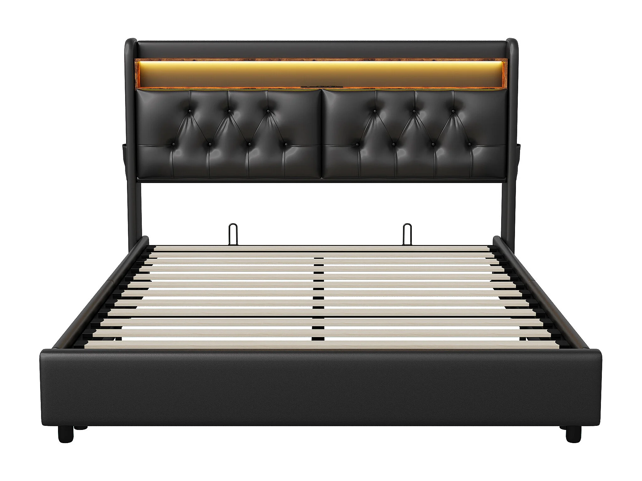 Lit double 180x200 cm - tête de lit avec éclairage LED et ports USB- espace de rangement hydraulique - PU - noir