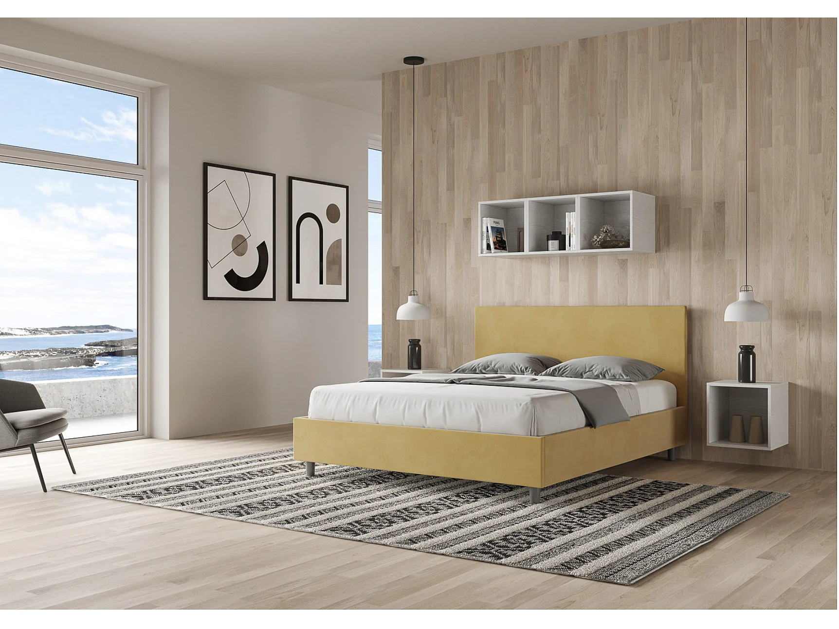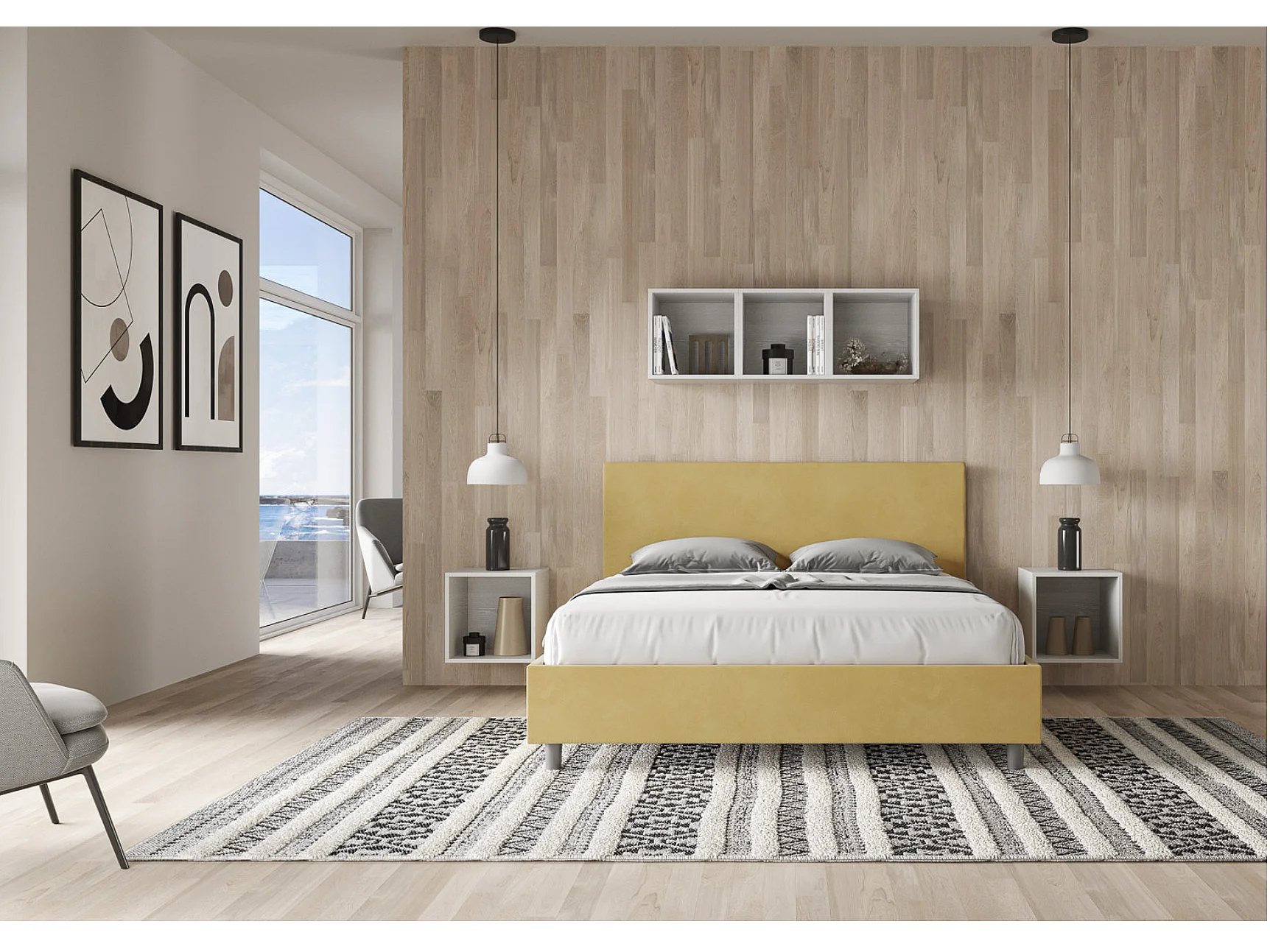 Lit adulte moderne microfibre Adelyne-Couleur Beige-180x200