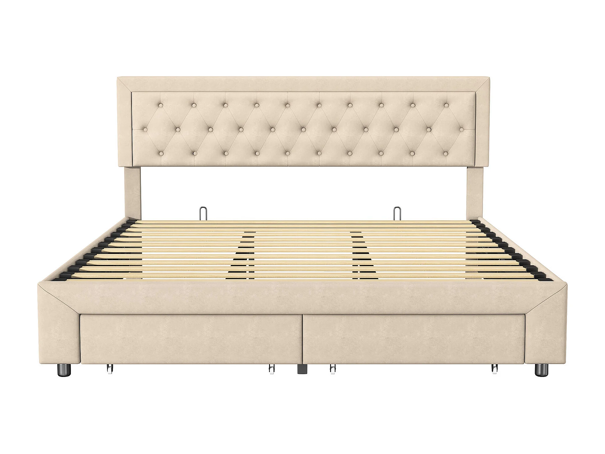 Lit double 180x200cm avec 2 tiroirs - rangement hydraulique et sommier à lattes - velours - beige