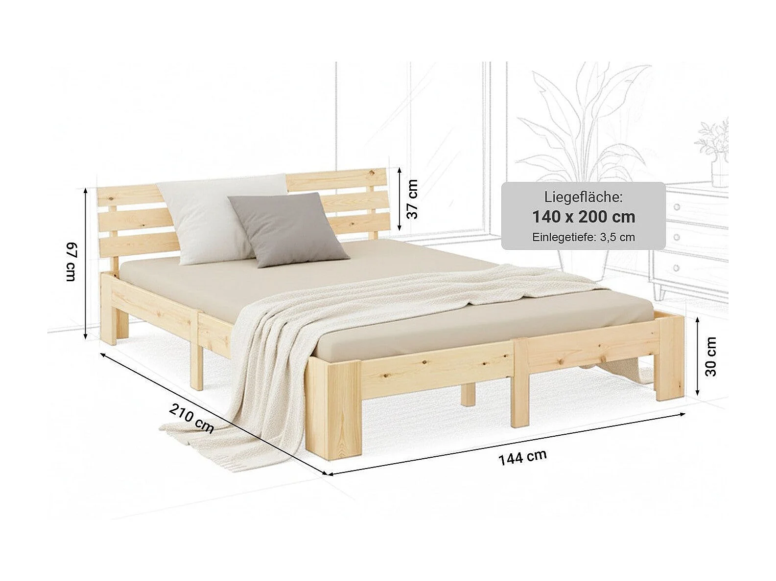 Lit double 2 personnes bois marron 204 x 144 x 66 cm LIT06162