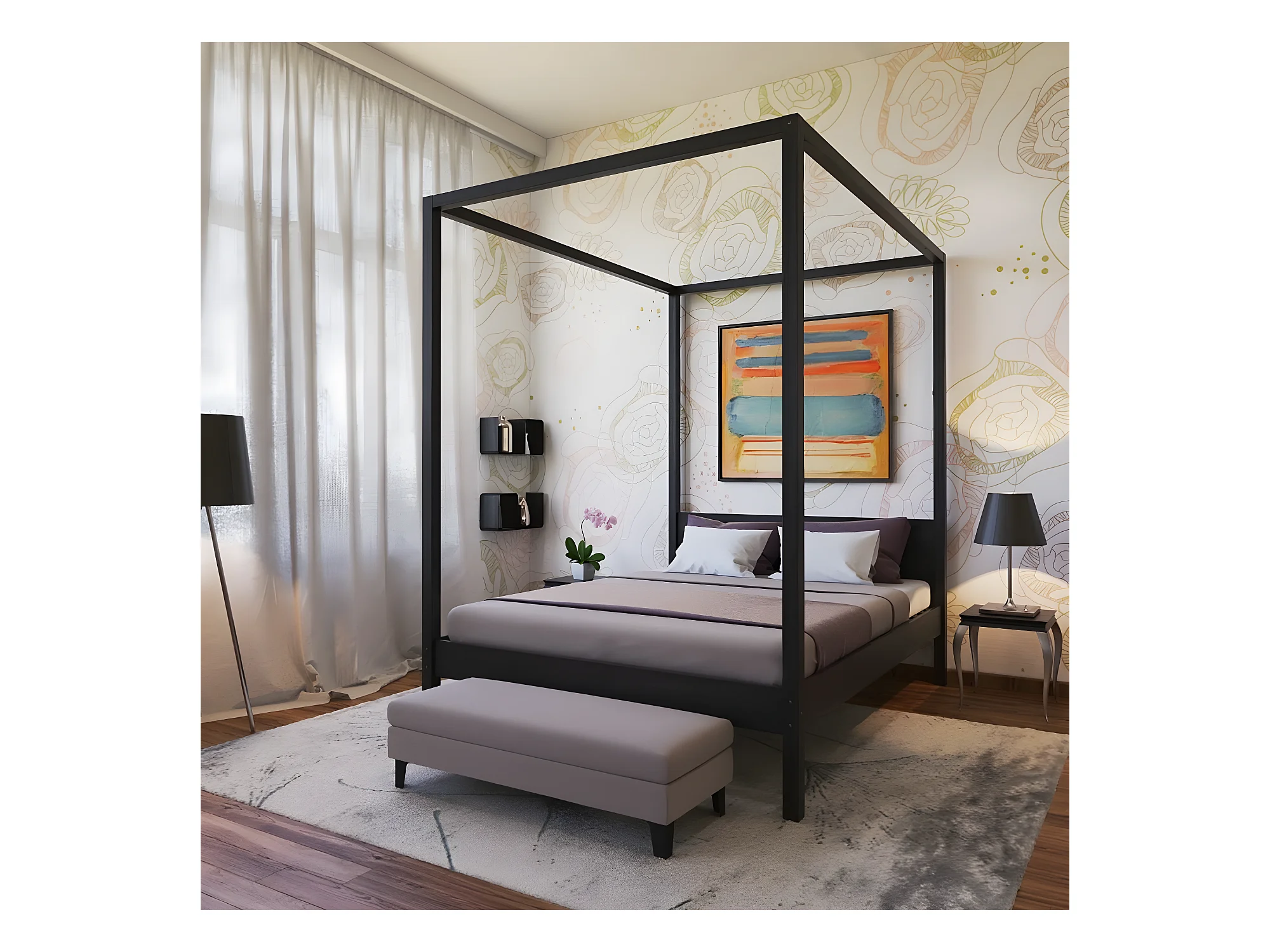 Lit double à baldaquin ROMANCE 140x190 / Noir