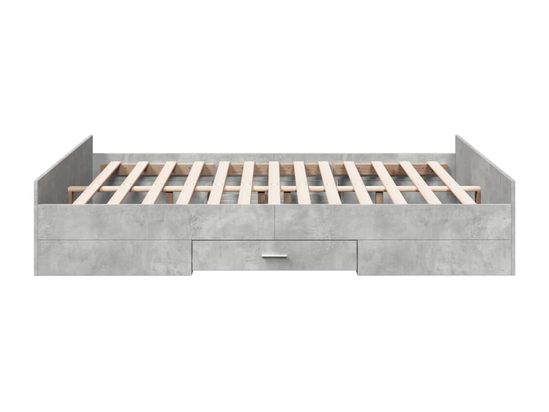 Lit double à tiroirs gris béton 150x200 cm bois d'ingénierie FR66624
