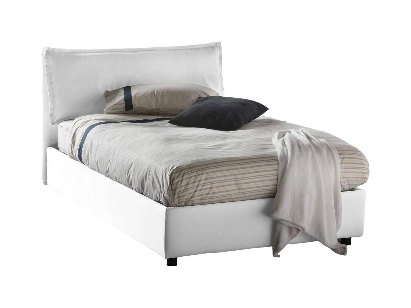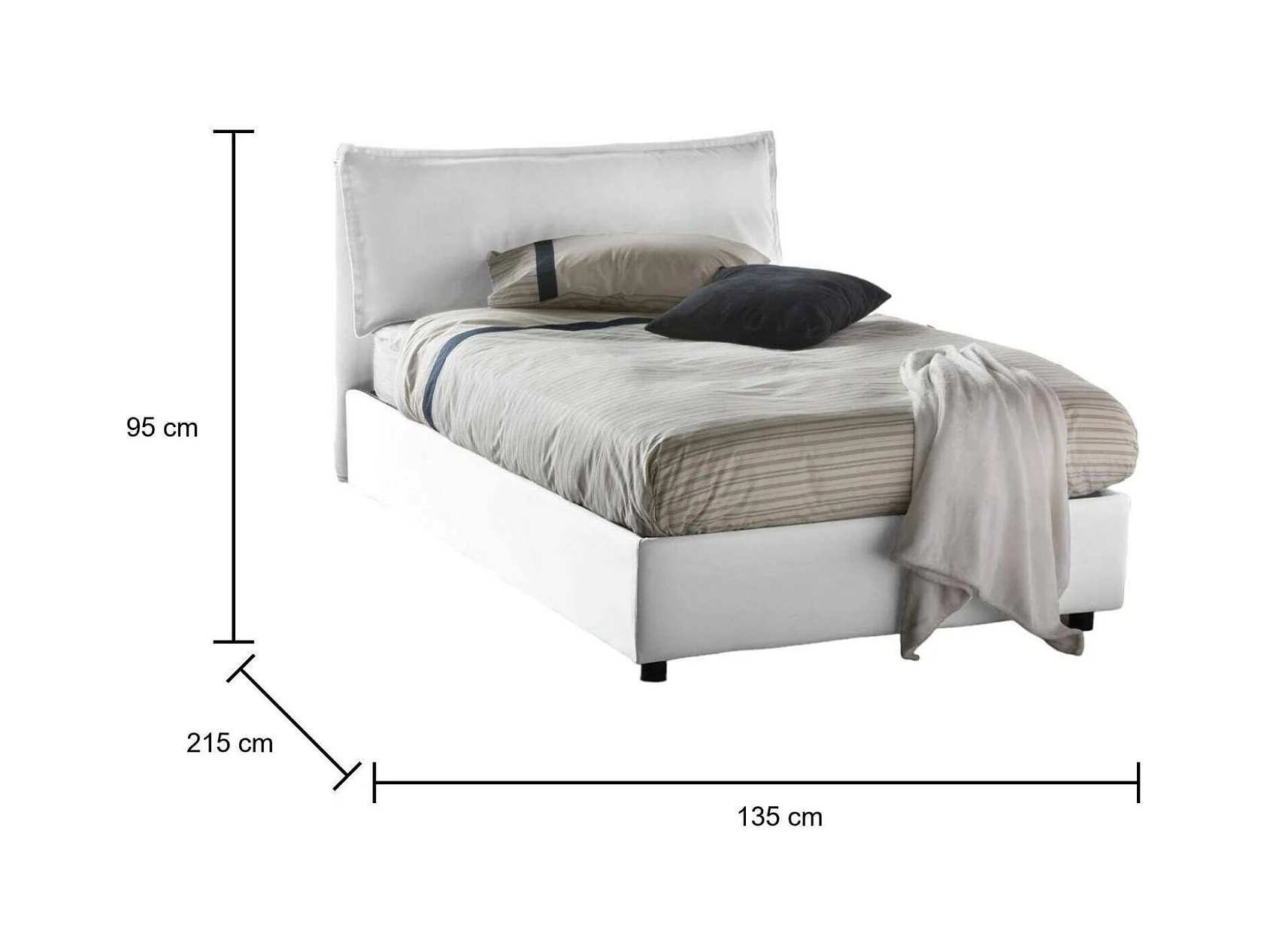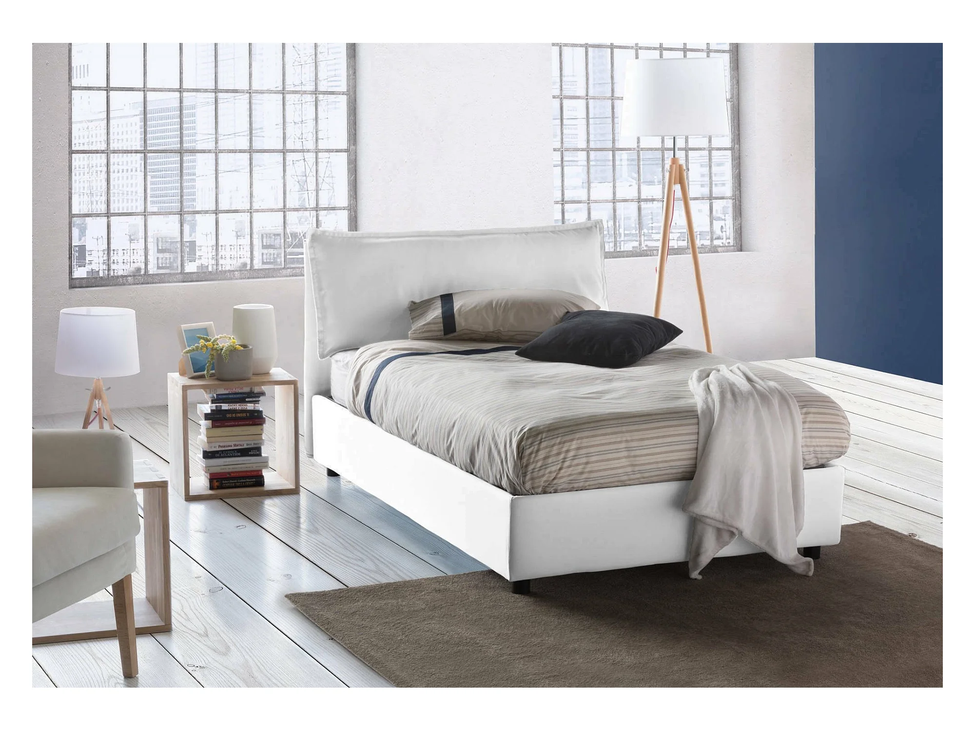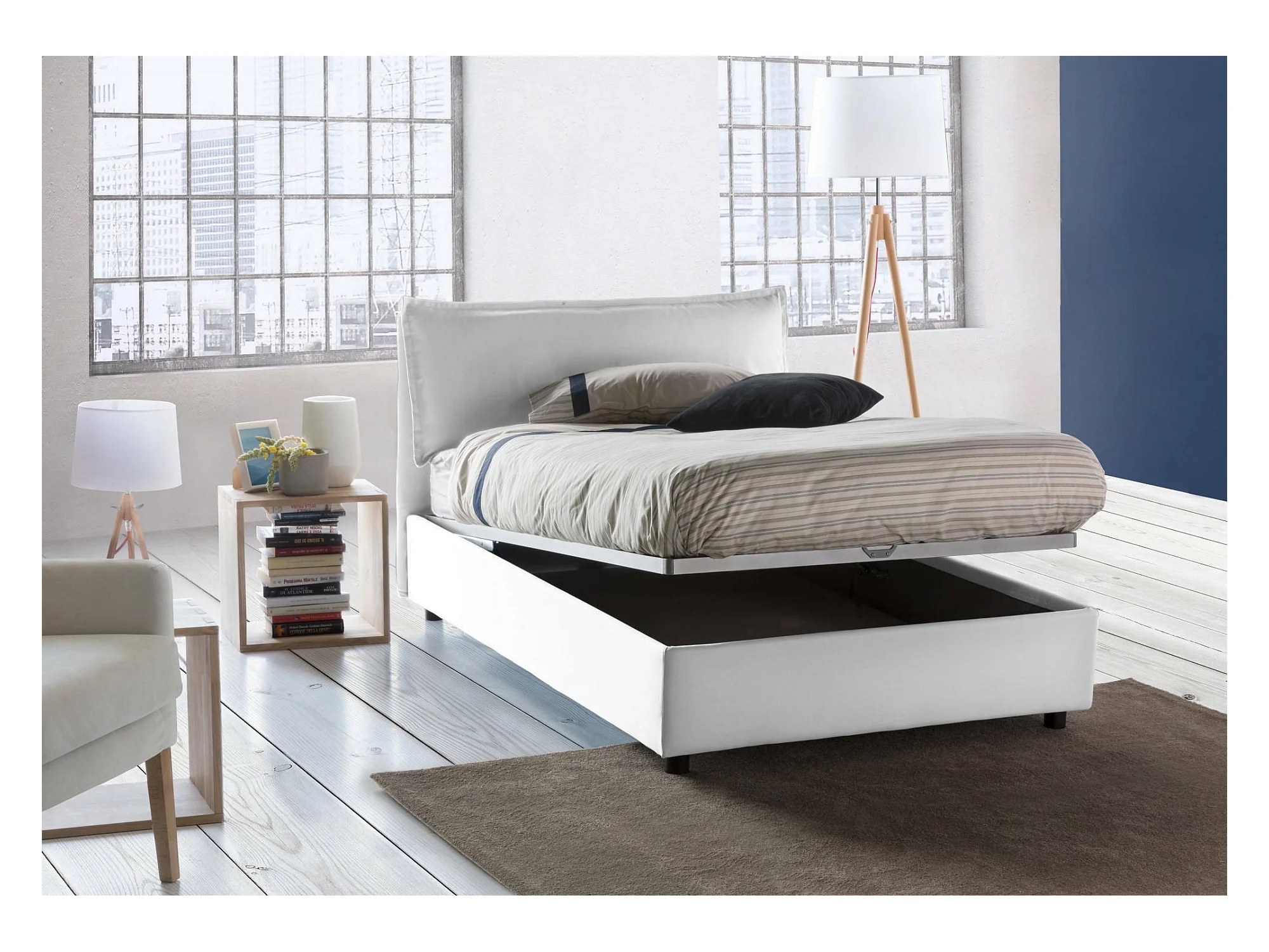 Lit double Agata, Lit coffre avec revêtement en tissu, 100% Made in Italy, Ouverture frontale, avec matelas 120x200 cm inclus, Blanc
