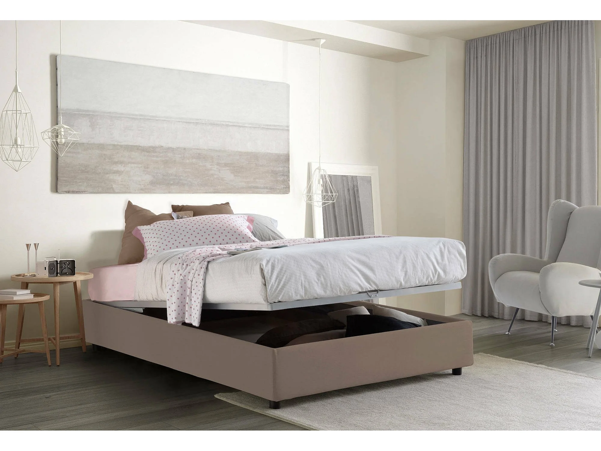 Lit double Arianna, lit coffre avec revêtement en tissu, 100% Made in Italy, ouverture frontale, adapté pour matelas 120x200 cm, gris tourterelle