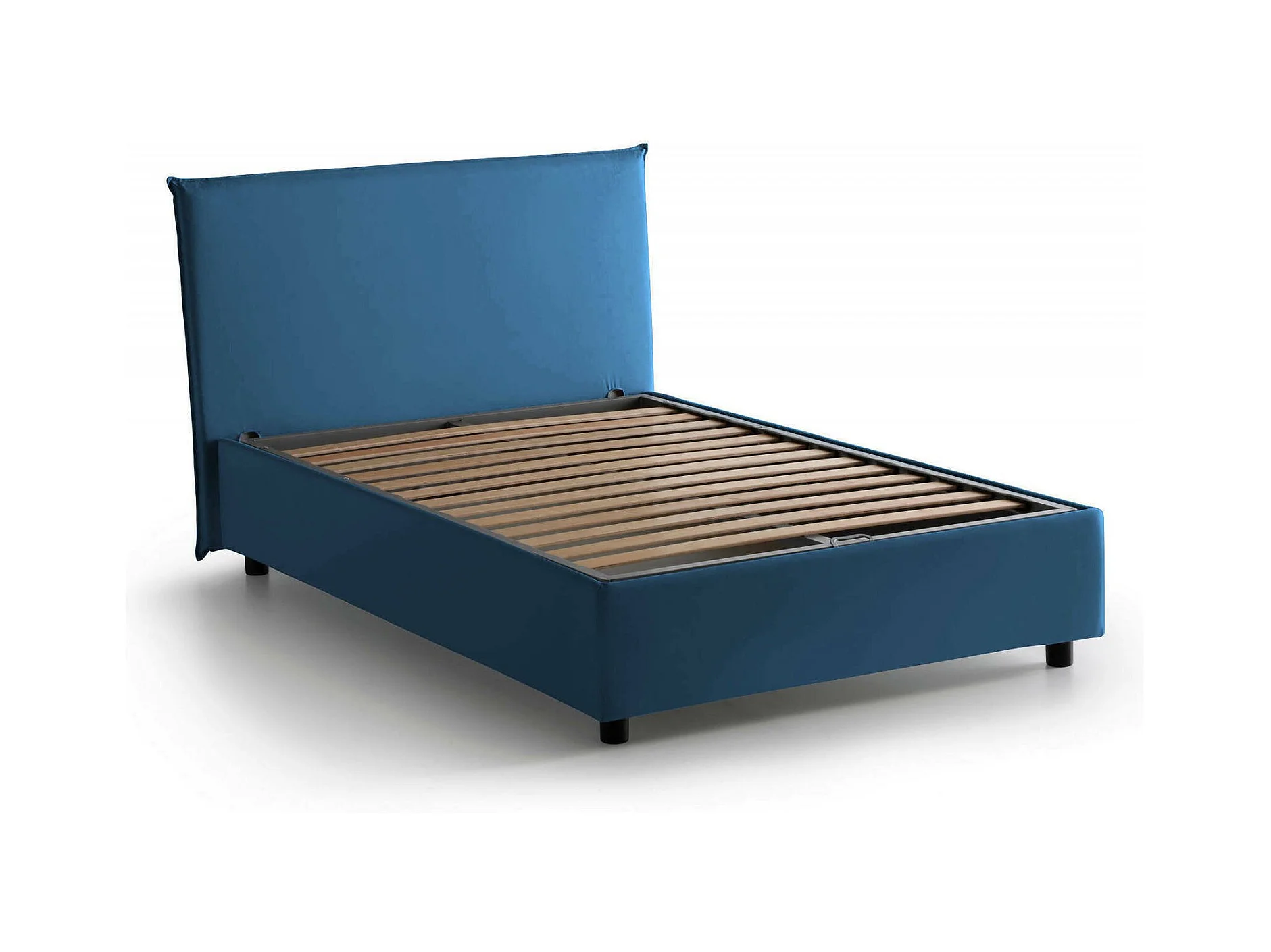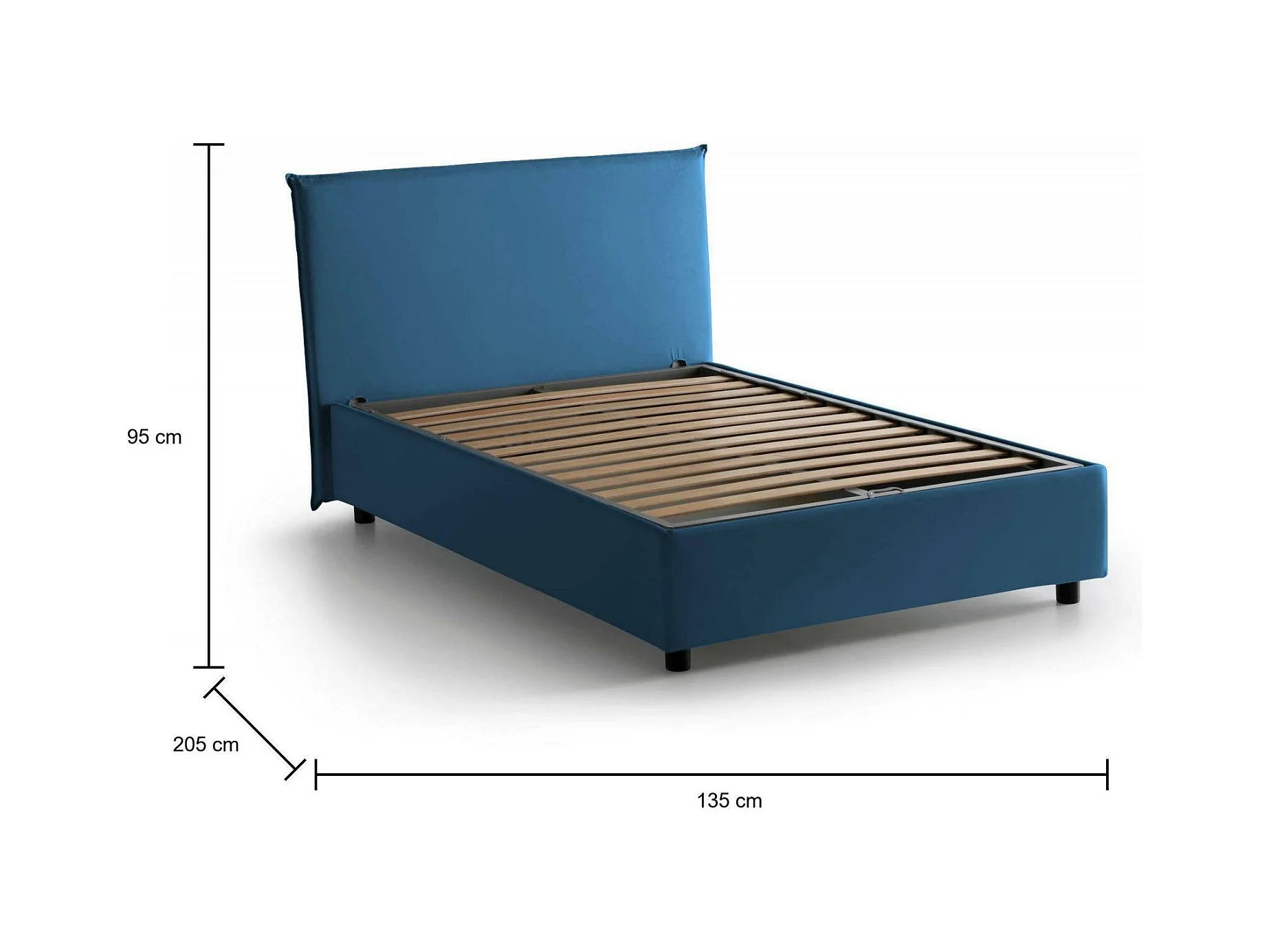 Lit double Ashasa, lit coffre avec revêtement en tissu, 100% Made in Italy, ouverture frontale, adapté pour matelas 120x190 cm, bleu