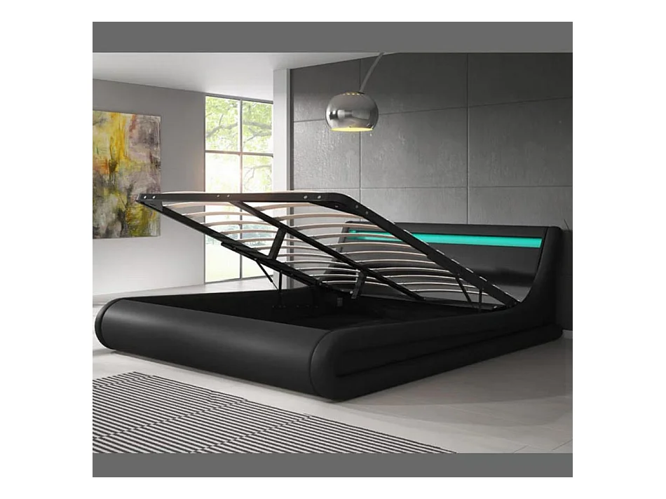 Lit double avec coffre 180x200cm en Noir avec LED Parisina