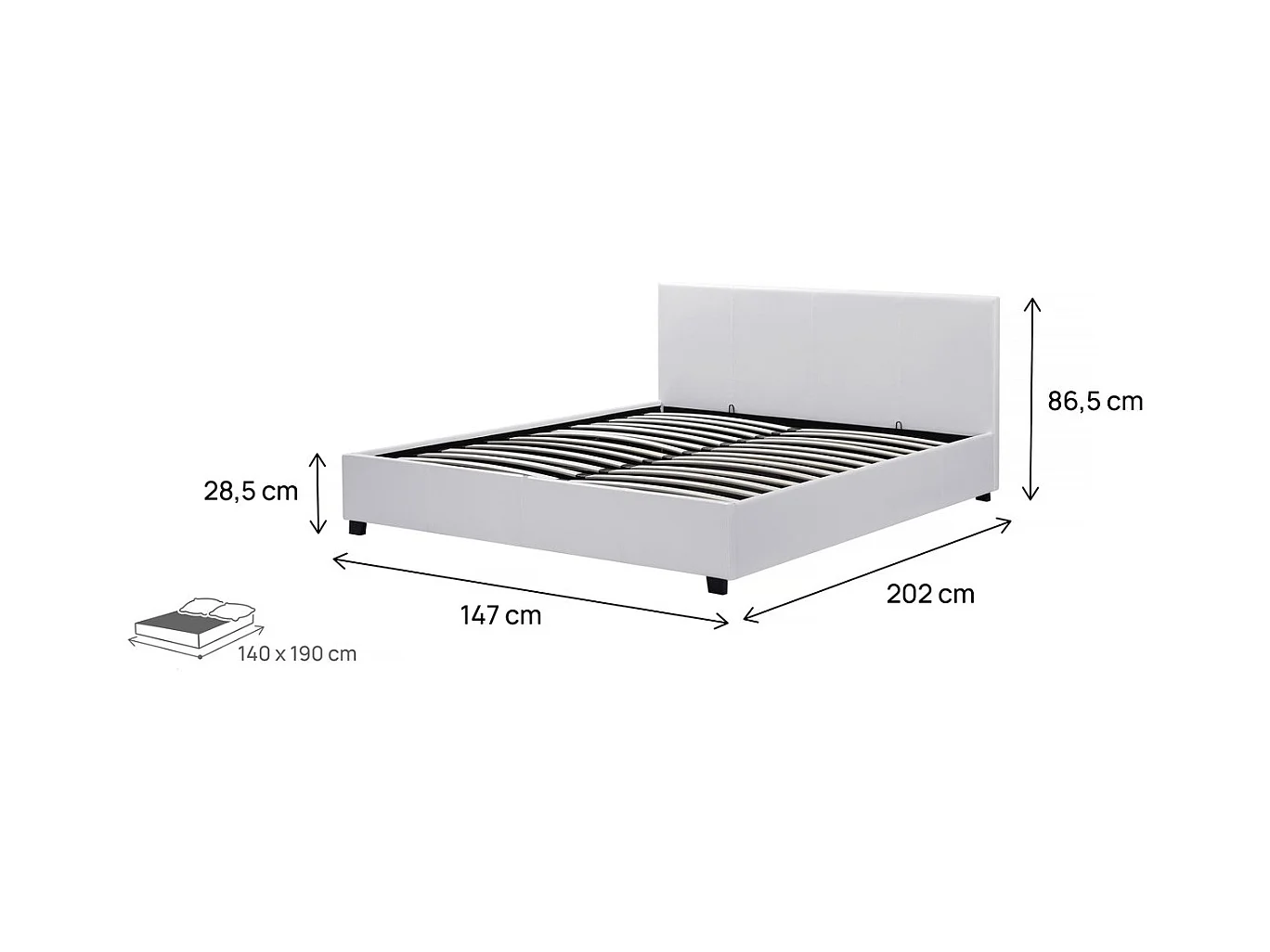 Lit double avec coffre "Carla" - 140 x 190 cm - Blanc