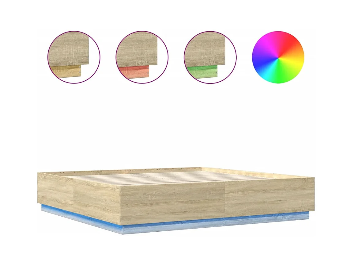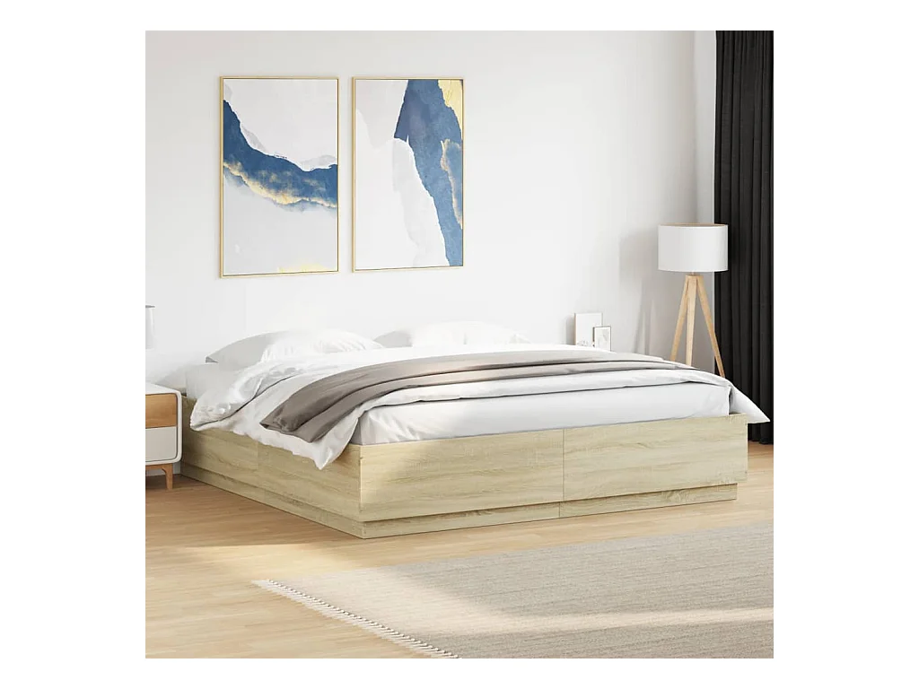 Lit double avec lumières LED chêne sonoma 200x200 cm FR94770