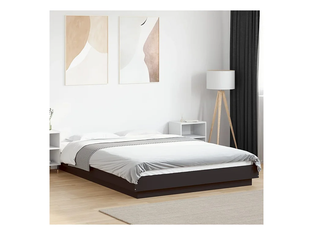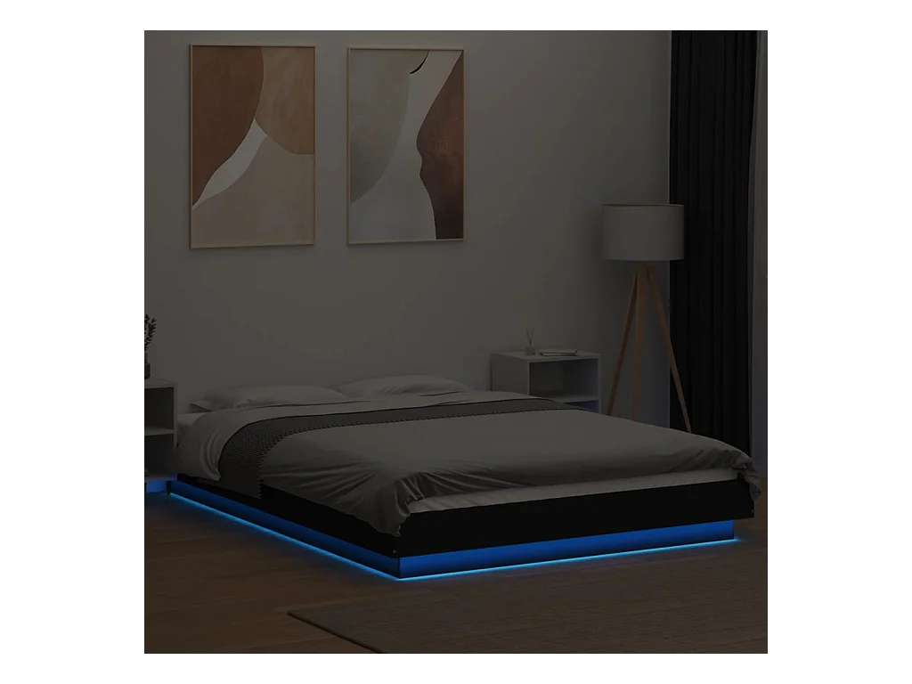 Lit double avec lumières LED noir 120x200 cm bois ingénierie FR73491