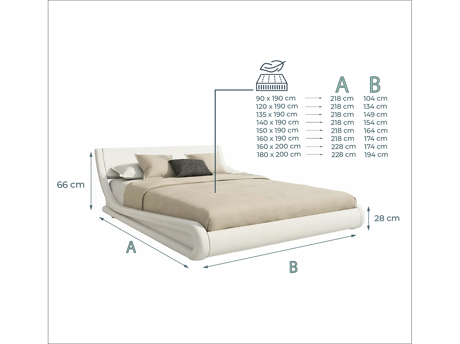 Lit double avec Matelas 140x190cm en Blanc Alessia