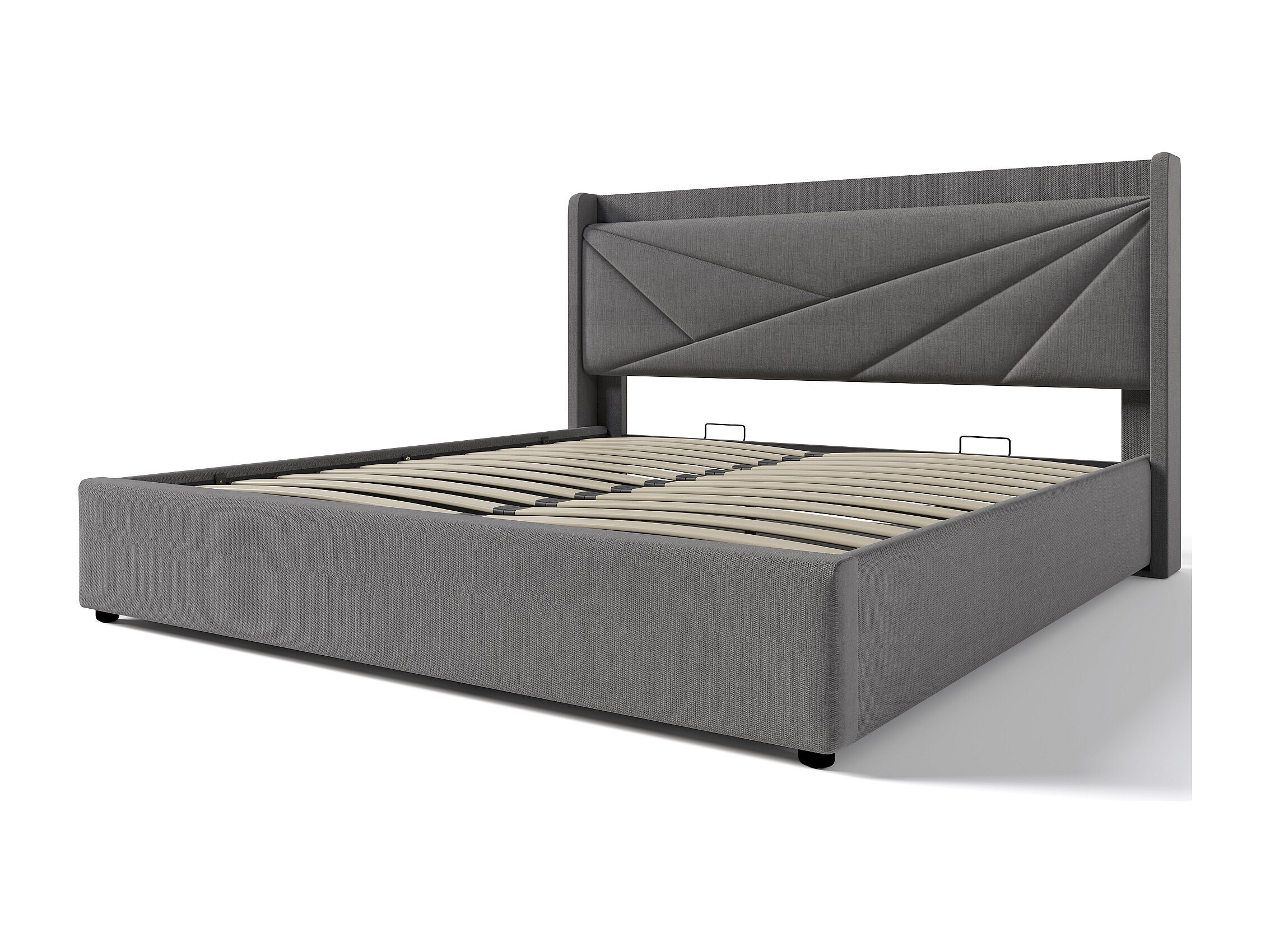 Lit double avec rangement et fonction de chargement USB Type-C, 180x200 cm, gris, tête de lit moderne