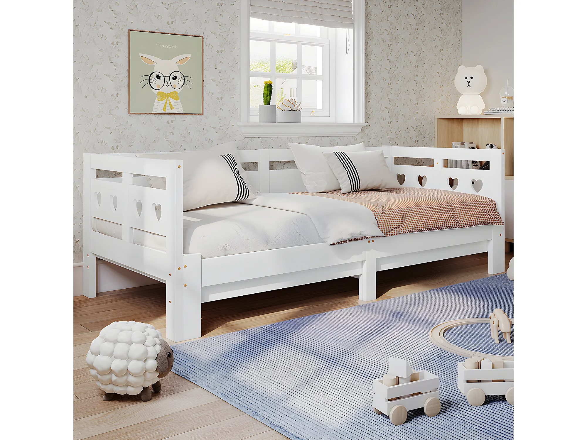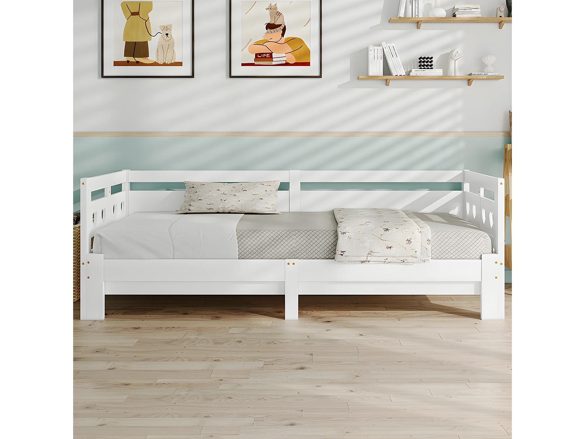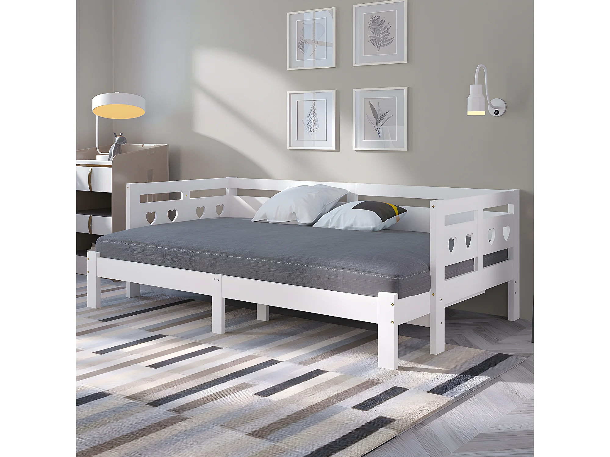 Lit double avec tête de lit - 90~182x200cm - pin massif- Blanc - Sweiko