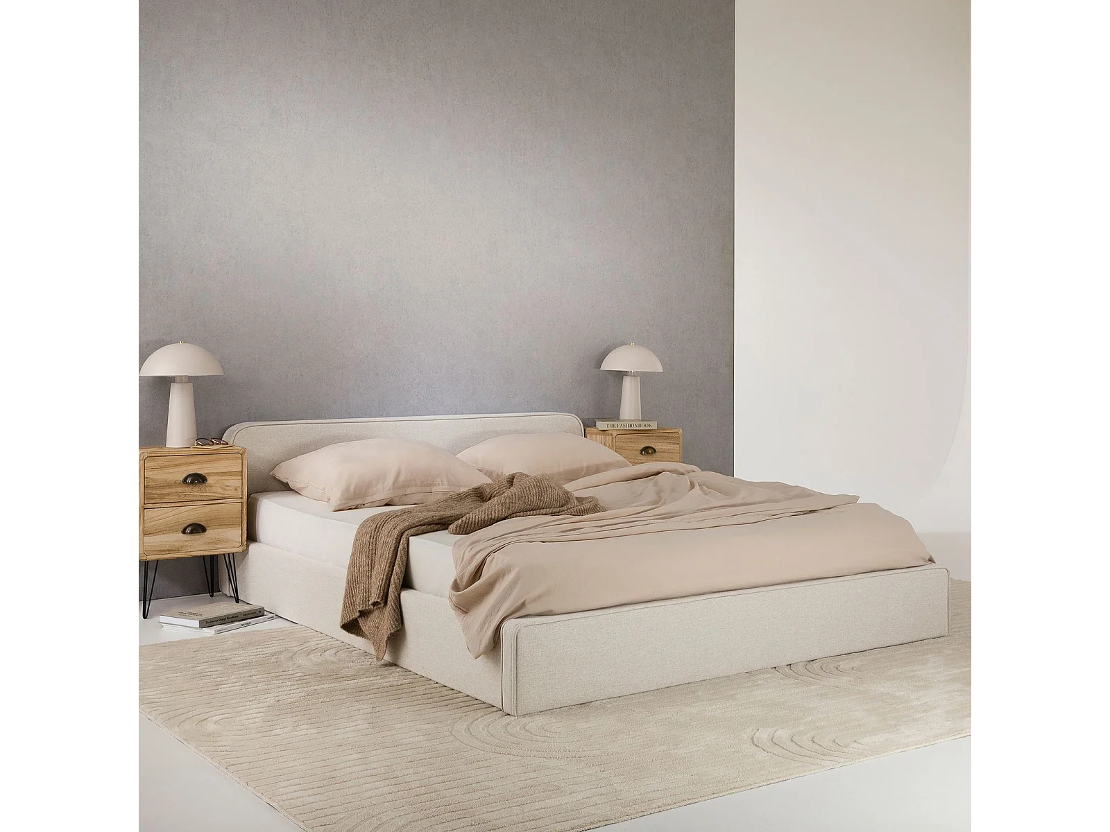Lit double BELARTI 140x190 cm, Revêtement en tissu Beige, Lit style moderne pour 2 personnes, Cadre avec sommier inclus