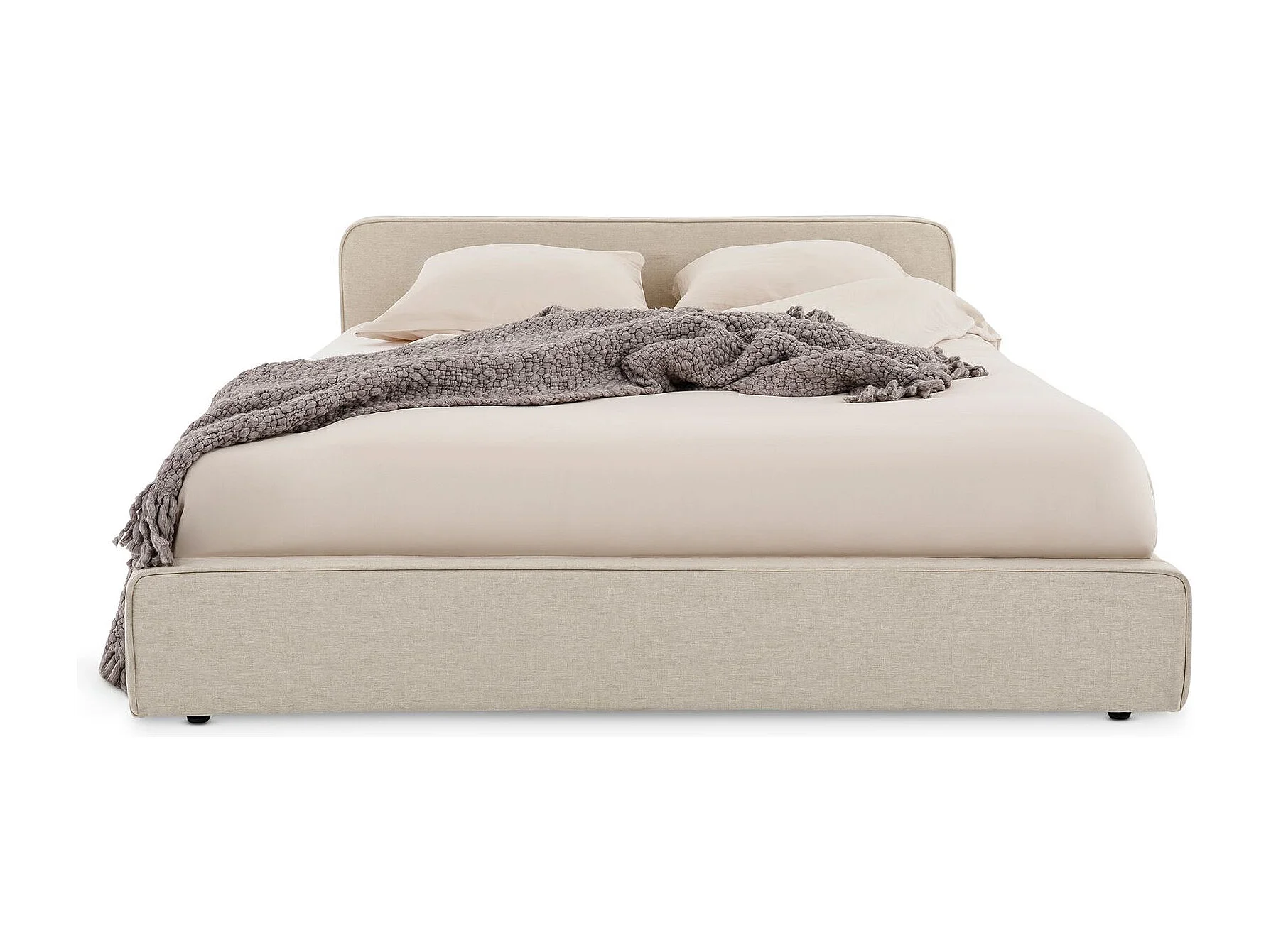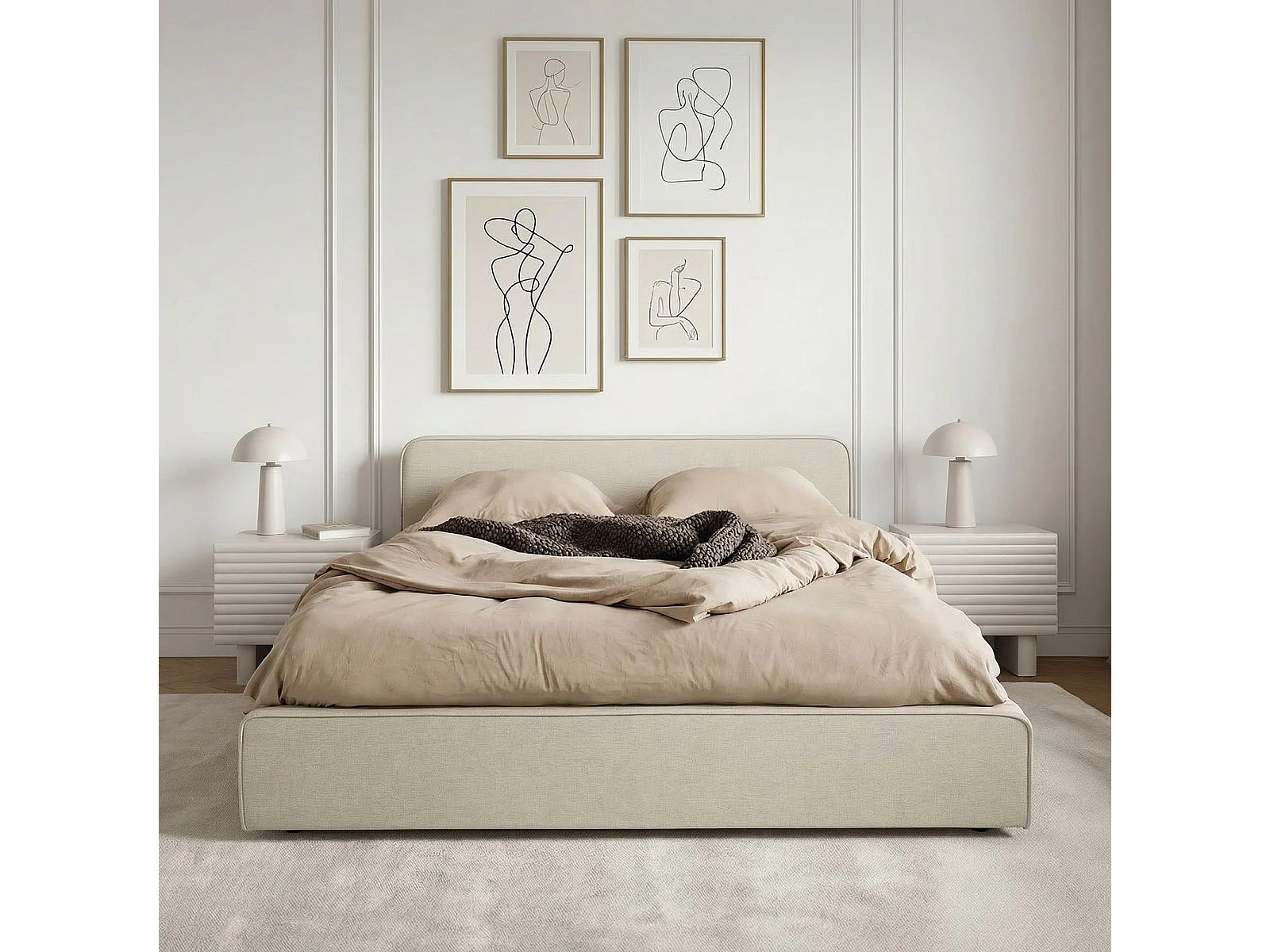 Lit double BELARTI 140x190 cm rembourré, Revêtement en tissu Beige, Lit style moderne pour 2 personnes, Cadre avec sommier inclus