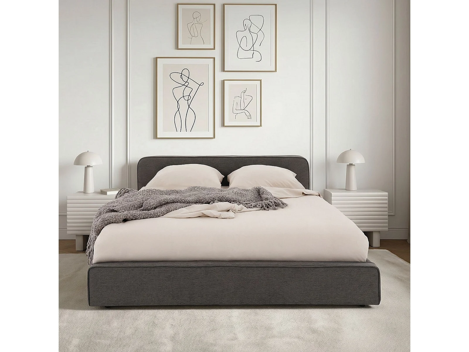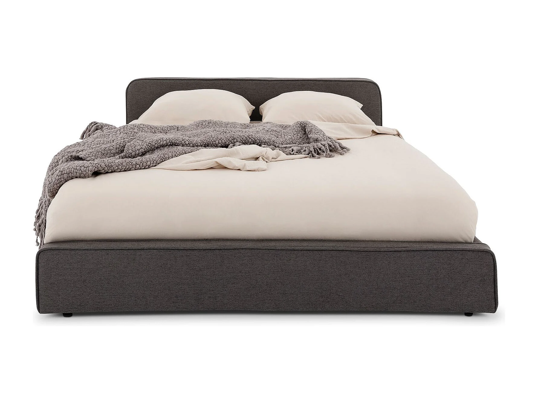 Lit double BELARTI 140x190 cm rembourré, Revêtement en tissu Gris foncé, Lit style moderne pour 2 personnes, sommier inclus