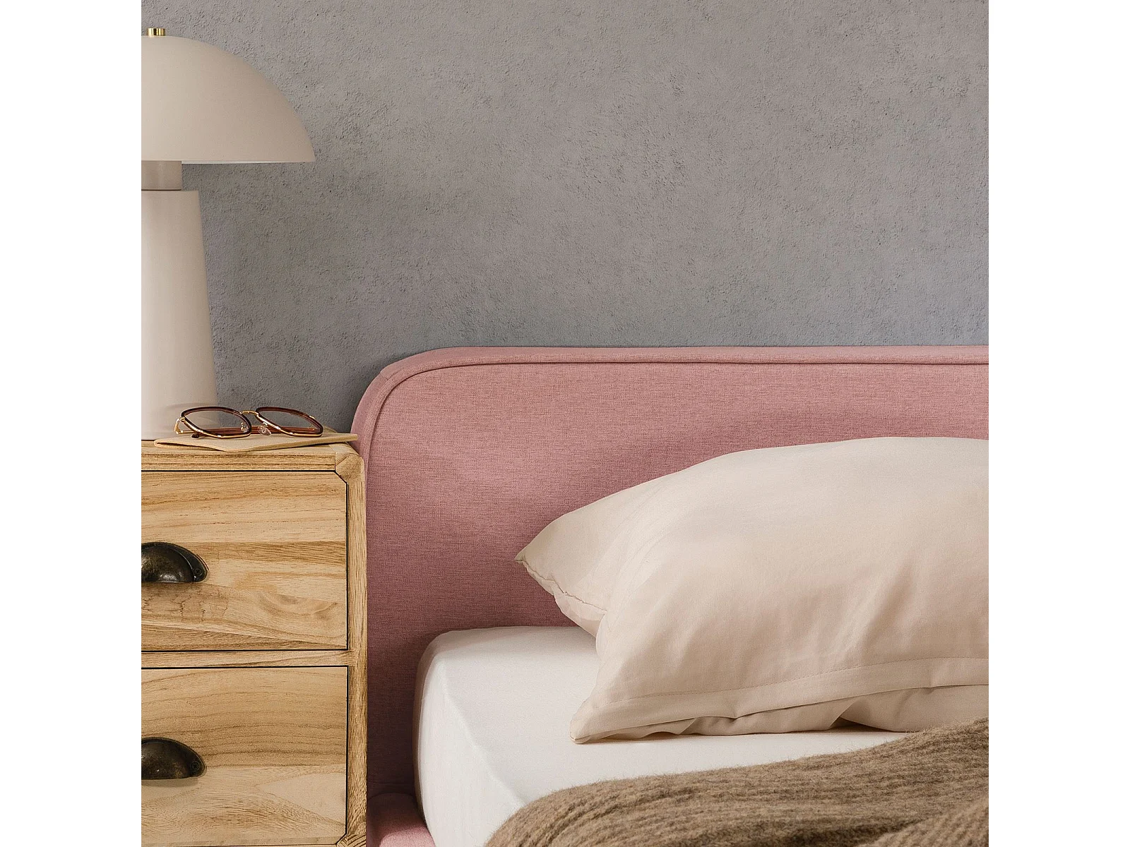 Lit double BELARTI 140x190 cm, Revêtement en tissu Rose, Lit style moderne pour 2 personnes, Cadre avec sommier inclus