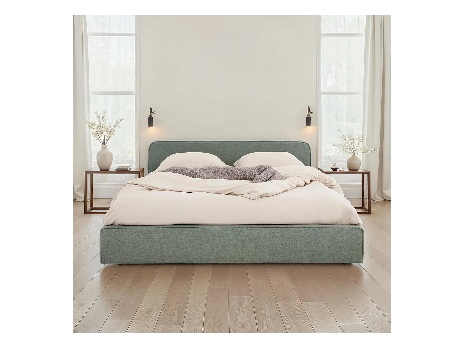 Lit double BELARTI 140x190 cm, Revêtement en Tissu Vert, Lit style moderne pour 2 personnes, Cadre de lit avec sommier inclus
