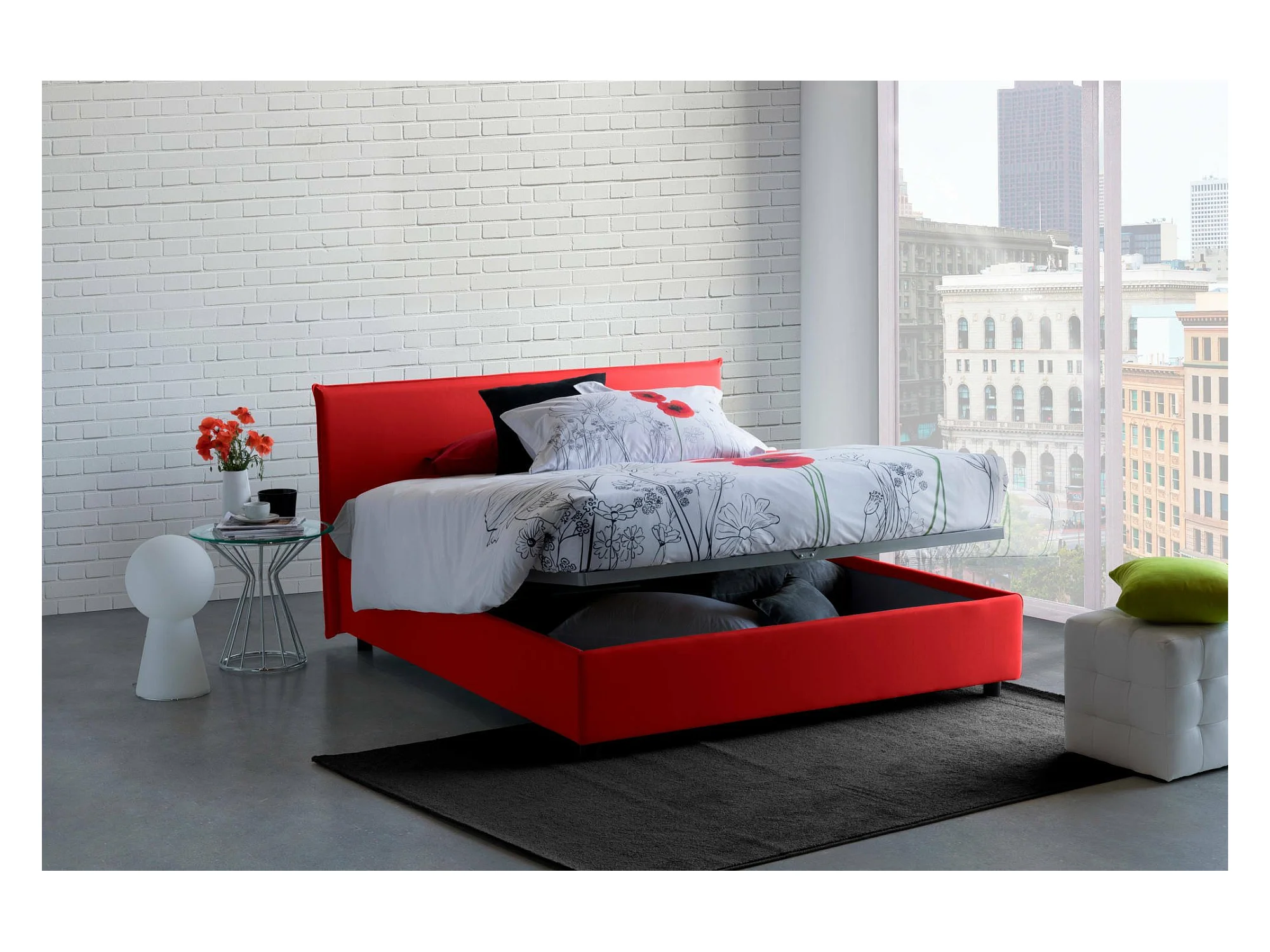 Lit double Betty, Lit coffre avec revêtement en tissu, 100% Made in Italy, Ouverture frontale, adapté pour matelas 160x190 cm, Rouge