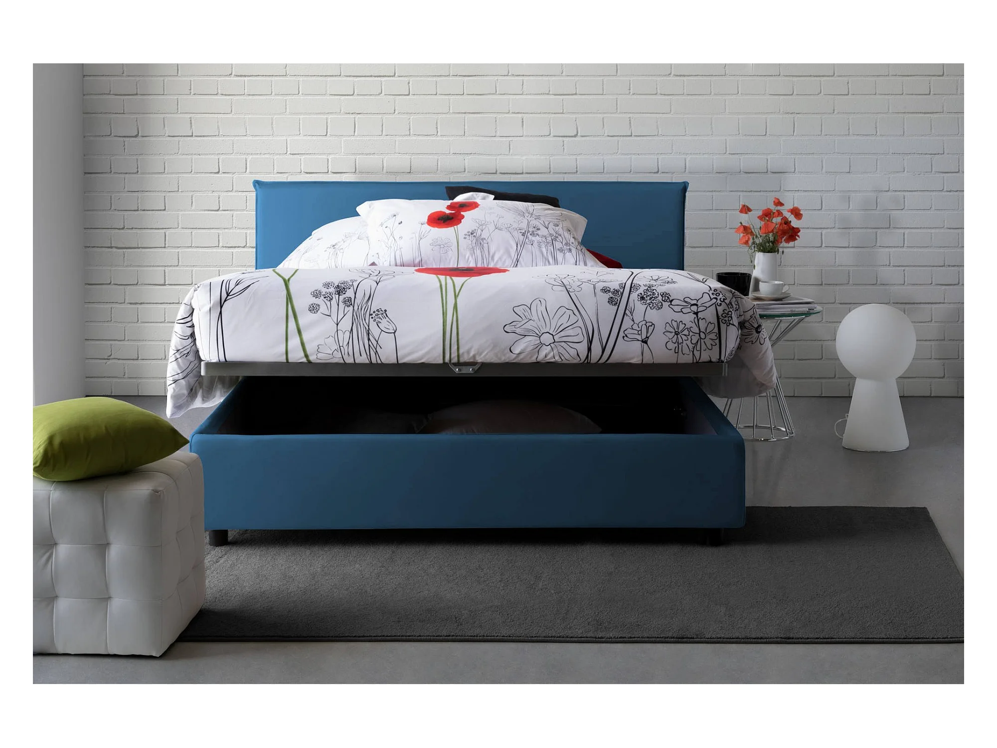 Lit double Brenda, Lit coffre avec revêtement en tissu, 100% Made in Italy, Ouverture frontale, avec matelas 160x200 cm inclus, Bleu