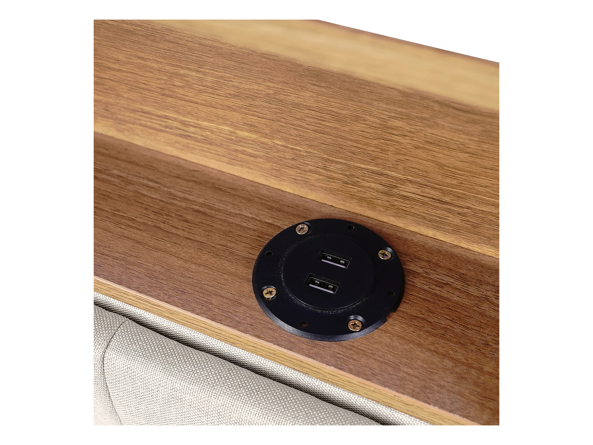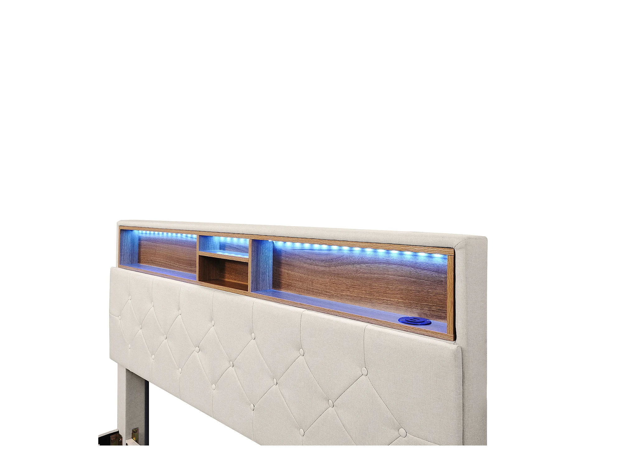 Lit double capitonné 140x200 cm avec 2 tiroirs - tête de lit réglable avec USB et LED - beige