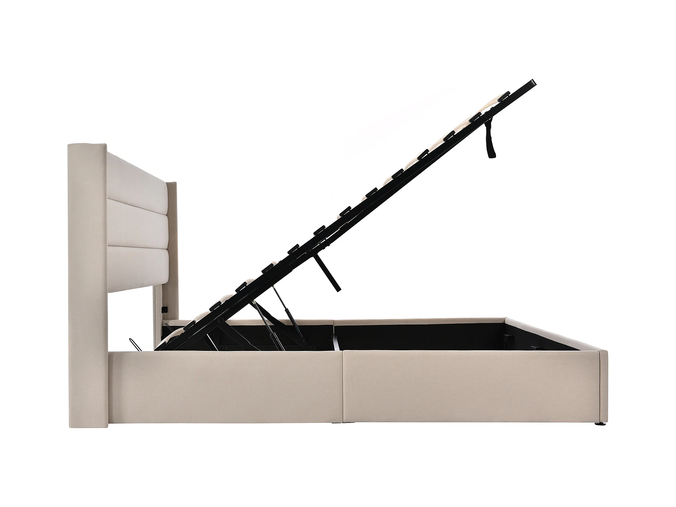 Lit coffre 140x200 cm lit adulte avec espace de rangement - en métal et lin - beige - sans matelas
