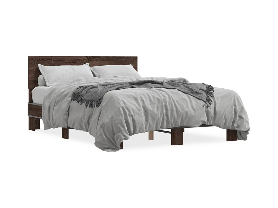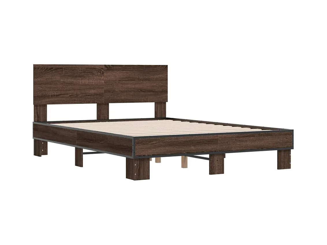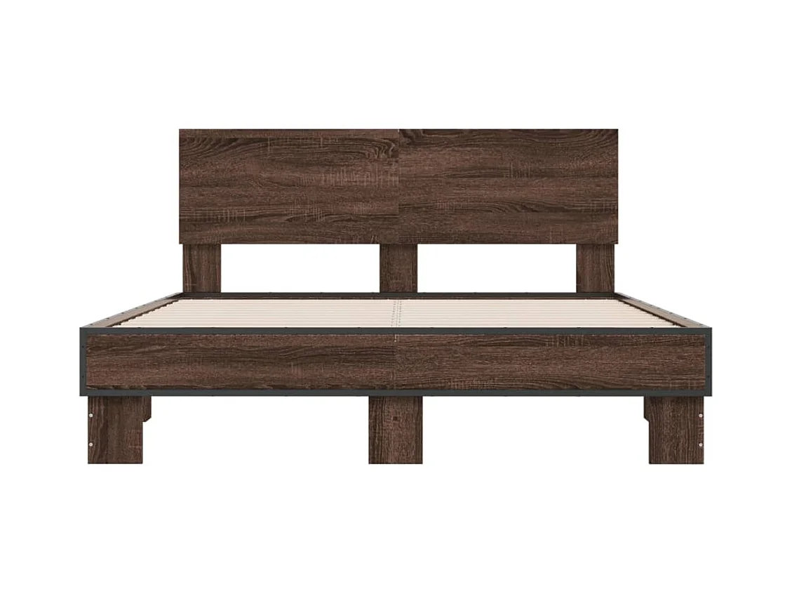 Lit double chêne marron 140x190 cm bois d'ingénierie et métal FR34446