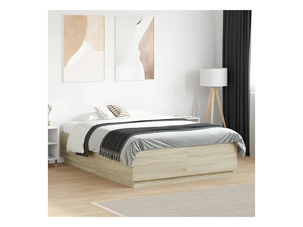 Lit double chêne sonoma 140x190 cm bois d'ingénierie FR68585