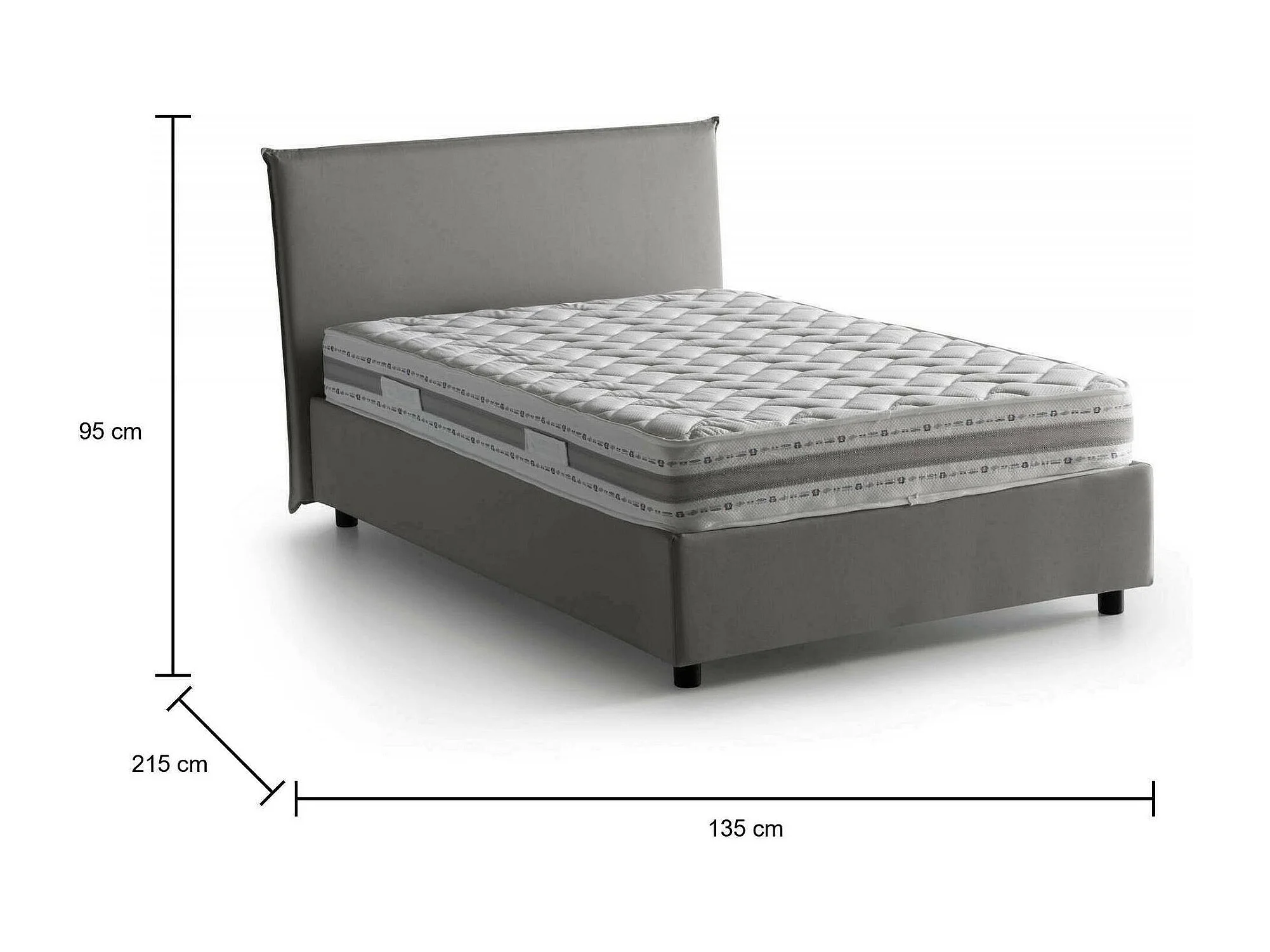 Lit double Chicca, Lit coffre avec revêtement en tissu, 100% Made in Italy, Ouverture frontale, avec matelas 120x200 cm inclus, Gris