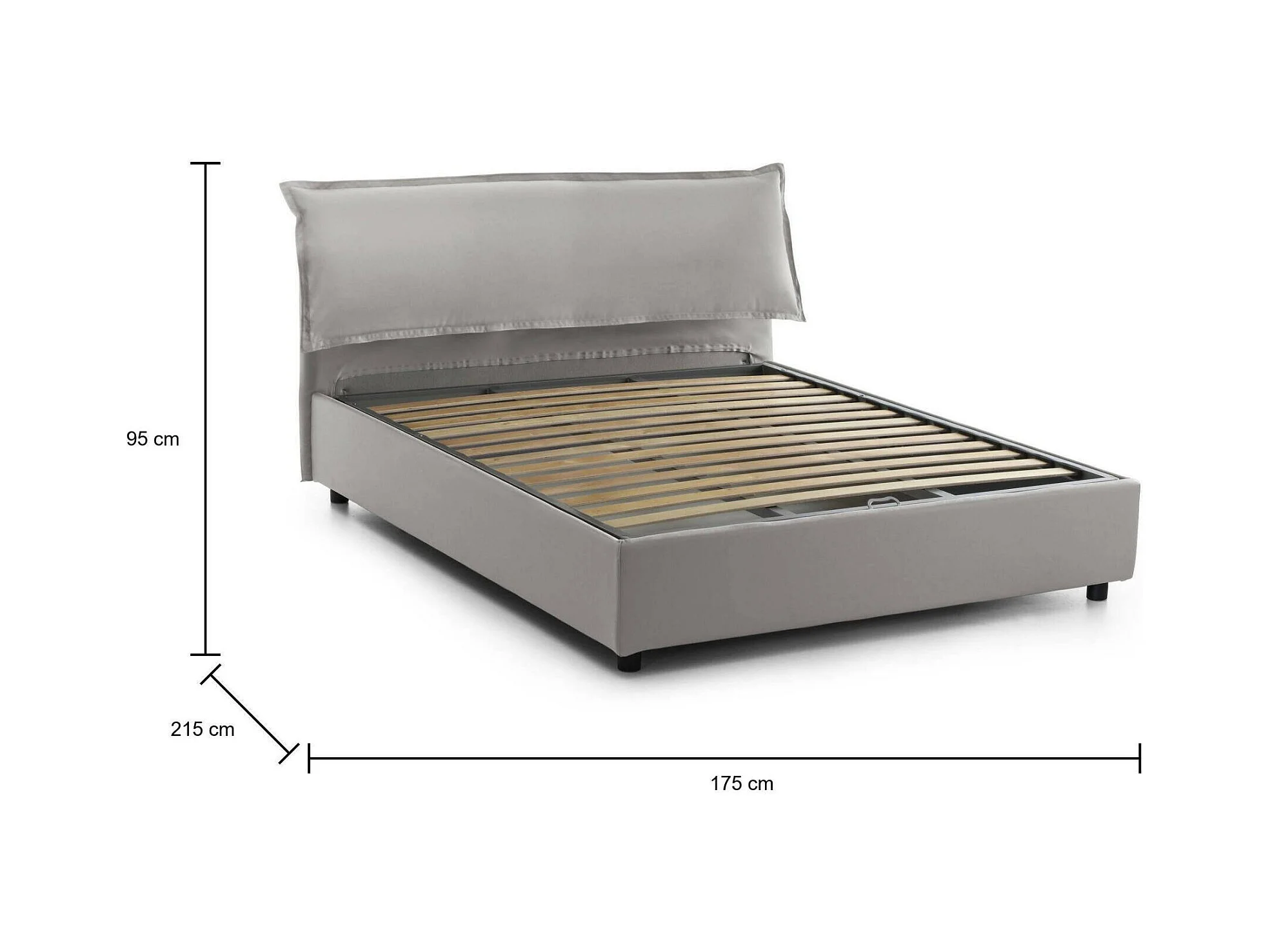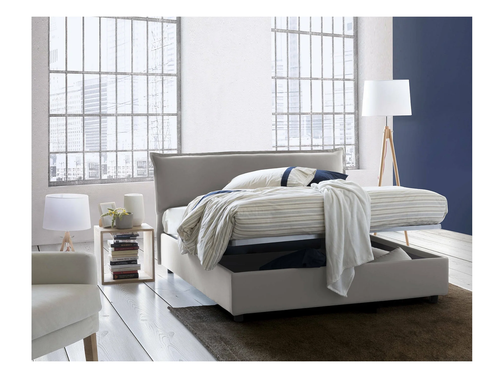 Lit double Cloe, Lit coffre déhoussable avec tête de lit rembourrée et cadre de lit coffre, 100% Made in Italy, adapté pour matelas 160x200 cm, Gris