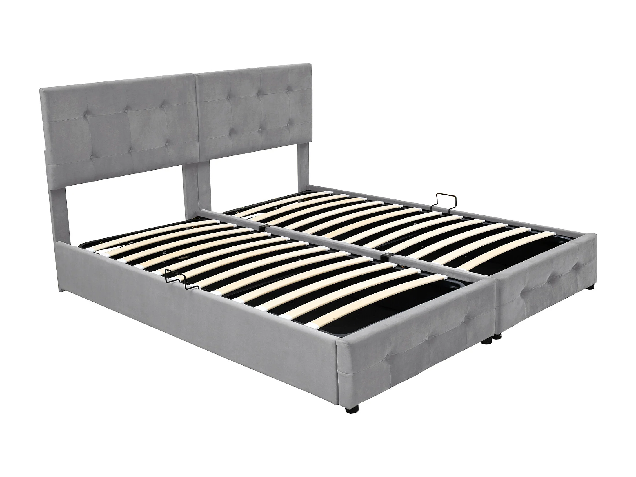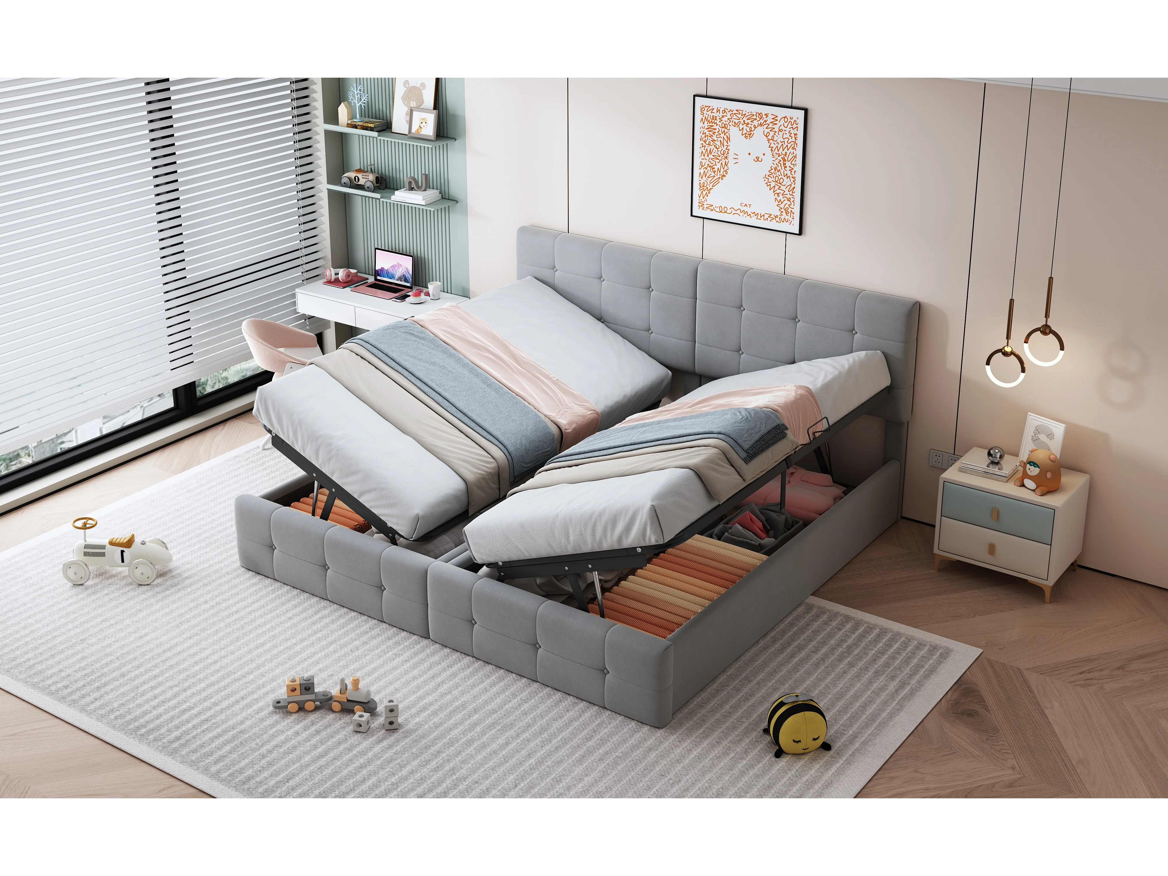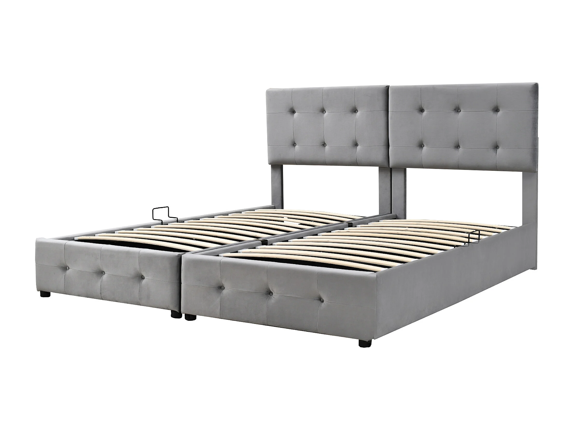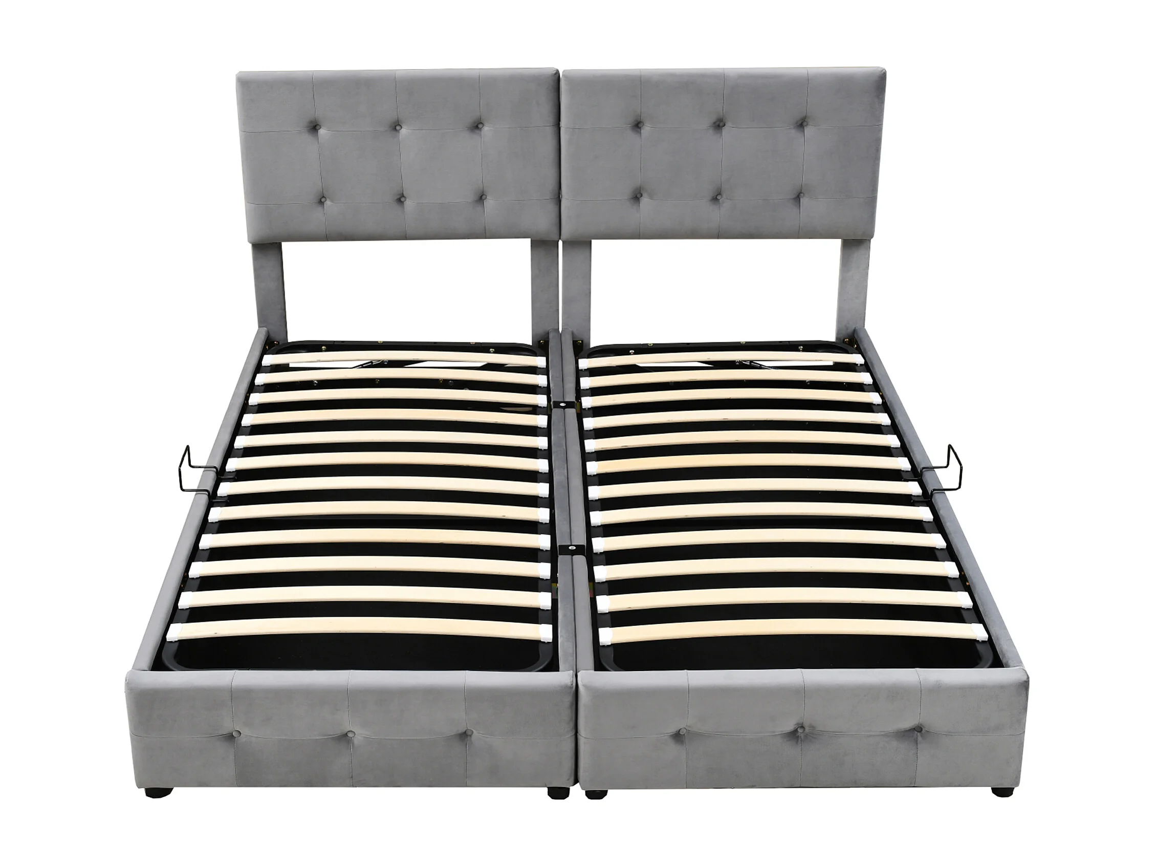 Lit double coffre 180x200cm convertible en lit enfant 2 x 90x 200cm - Velours gris