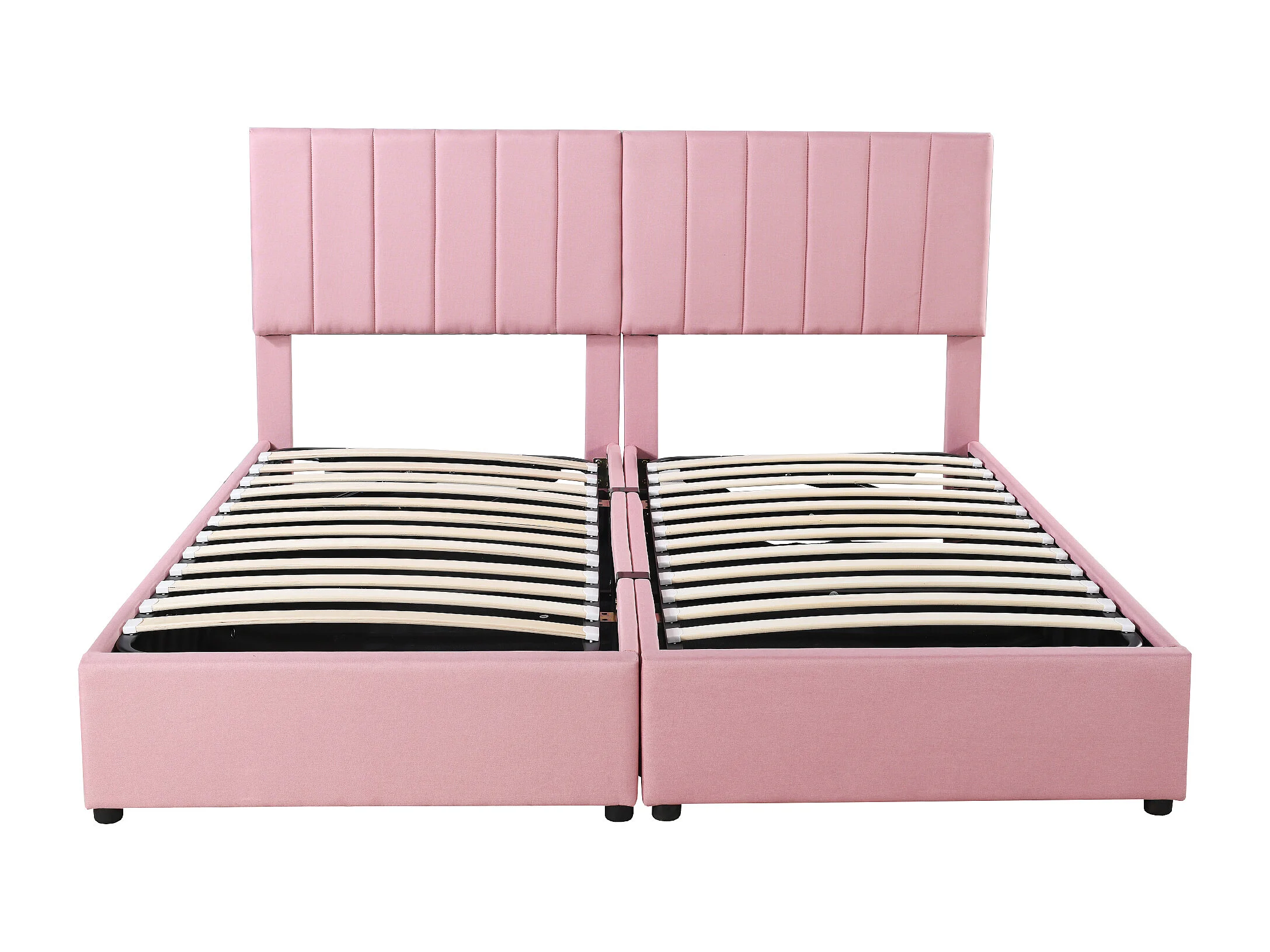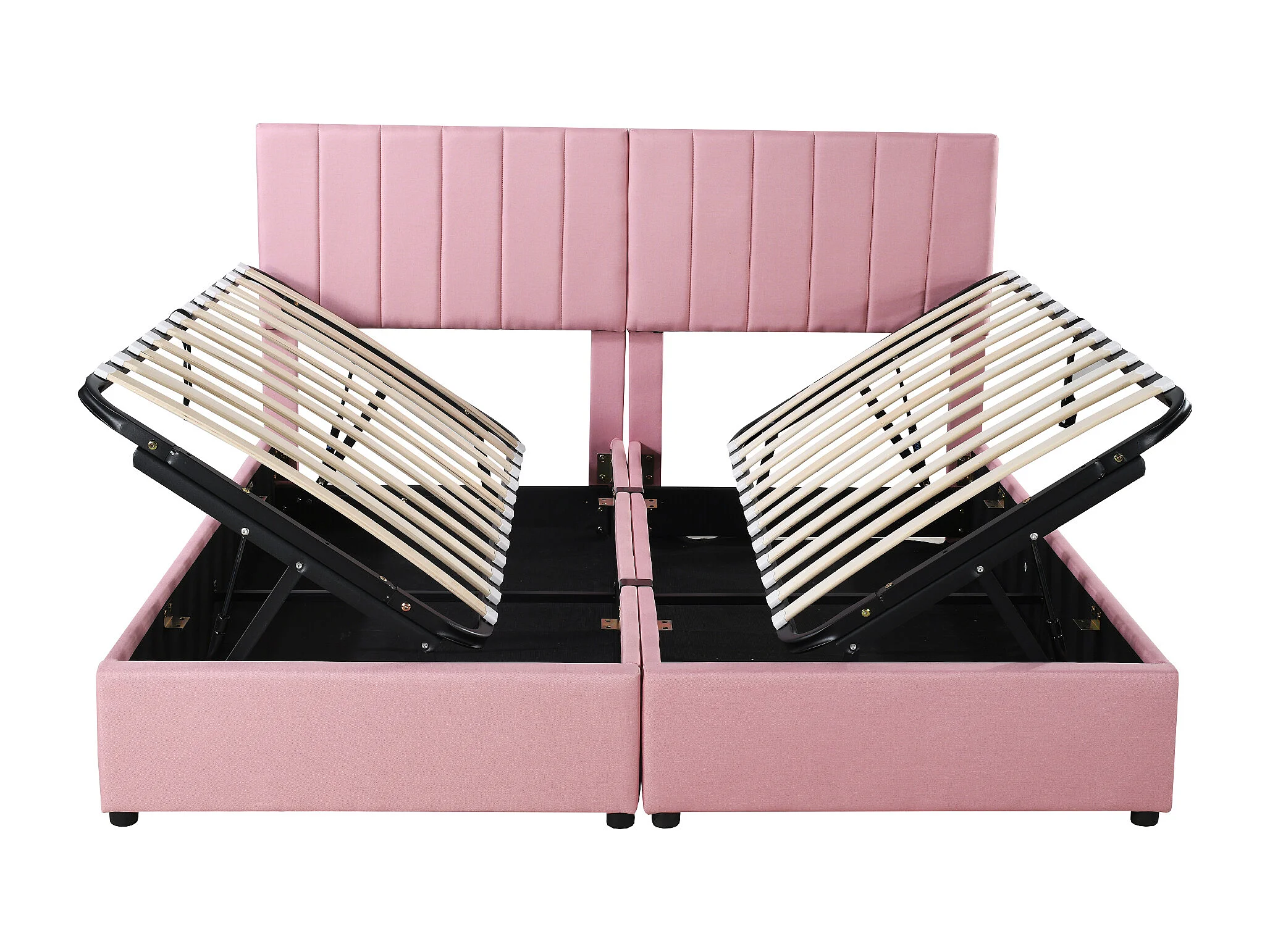 Lit double coffre adulte 180x200cm convertible en lit enfant 2 x 90x 200cm - Tissu lin rose