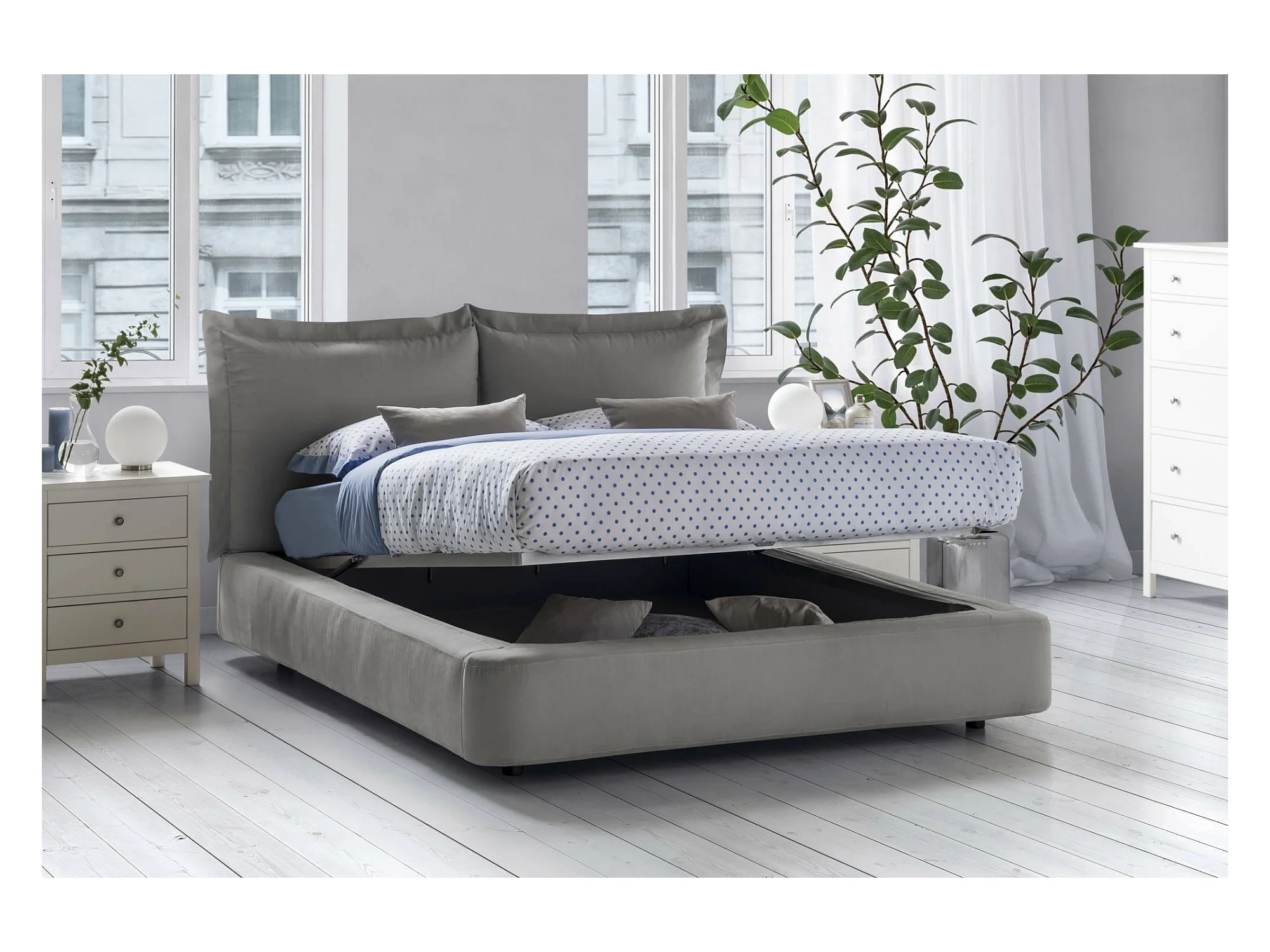 Lit double Cornelia, Lit coffre avec revêtement en tissu, 100% Made in Italy, Ouverture frontale, adapté pour matelas 160x190 cm, Gris