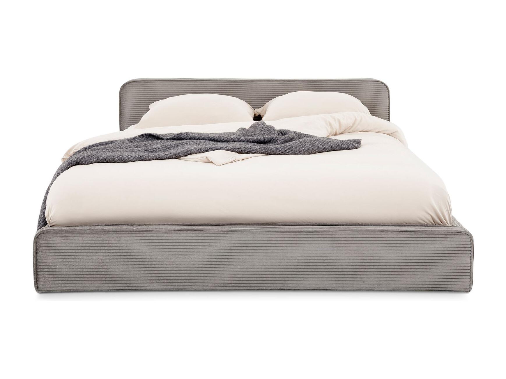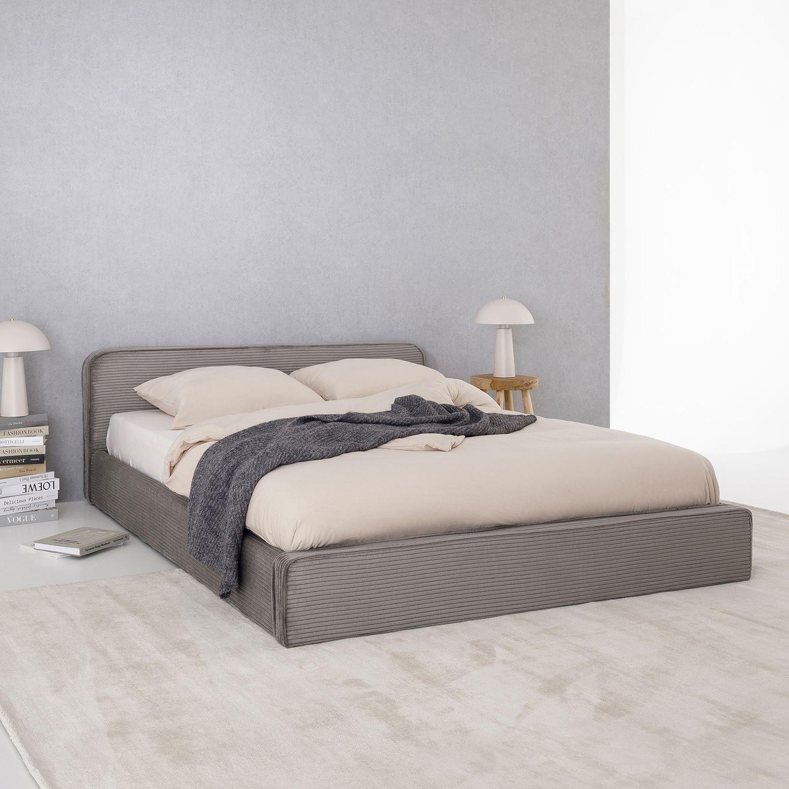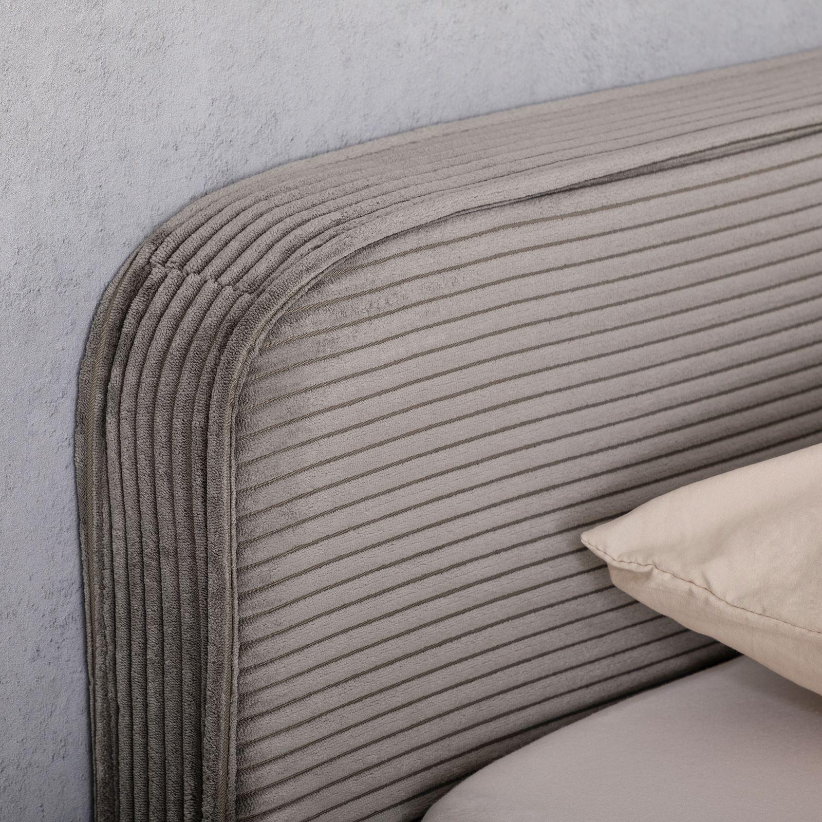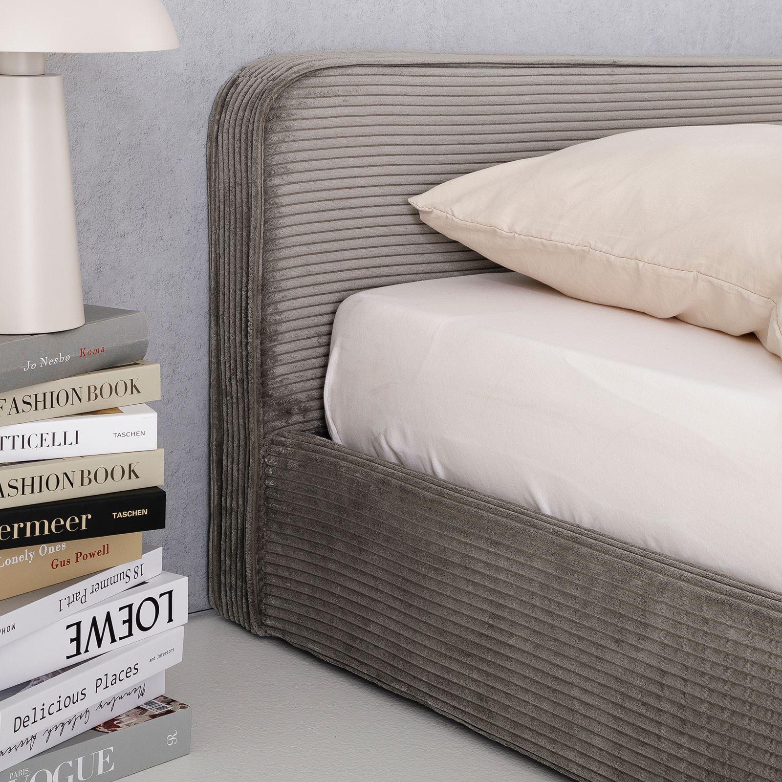 Lit double CURSIO 140x190 cm, Revêtement en tissu velours côtelé Gris, Lit 2 personnes, Cadre de lit en bois avec sommier